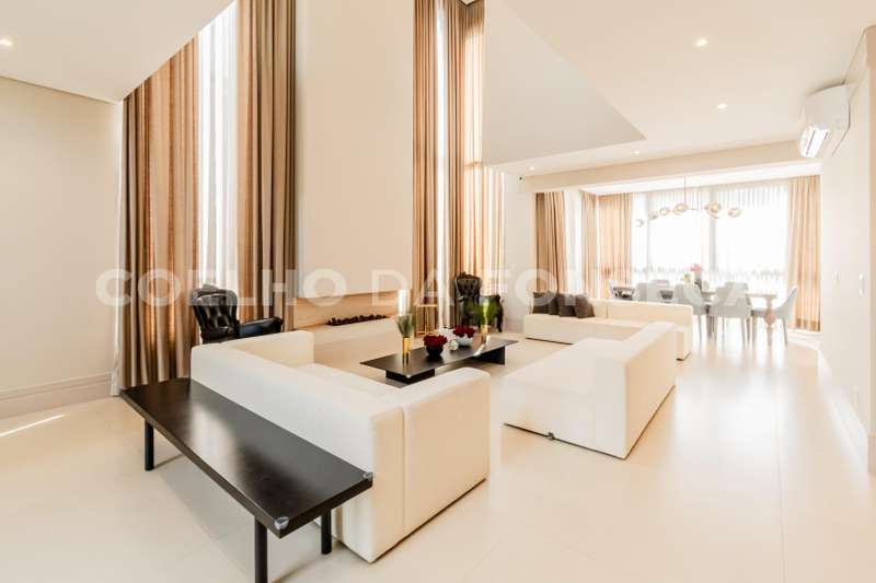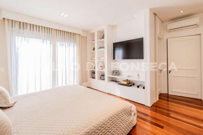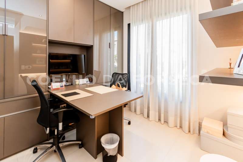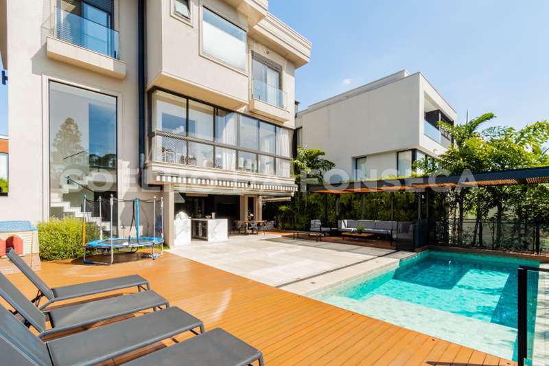 Casa no condomínio TAMBORÉ XI, com 466m² área construída, 6 dormitório(s), 5 suíte(s), 4 vaga(s), 7 banheiro(s), piscina, escritório, rua sem saída, ar condicionado, varanda, aquecedor solar, pé direito duplo.