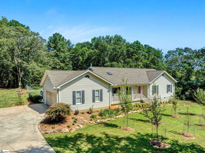 Welcome to this beautiful ranch-style home at 125 Christie Lane in Piedmont?a hidden retreat tucked away on 2 private acres with no HOA, in the highly sought-after Wren school district. Blending modern upgrades with timeless character, this 3-bedroom, 2-bath home features original hardwood floors, new carpet (2023), fresh paint throughout (2021?2024), and a cozy wood-burning stove (2021). The kitchen is fully equipped with all new appliances (2021), while the Anderson sliding door (2023) fills the home with natural light and includes a transferable 8-year warranty. Peace of mind comes with major updates already completed, including HVAC handling and ductwork (2021), water heater (2022), front door (2023), and garage door opener (2024). Outdoors, enjoy a 2-car garage with a hidden gravel-to-concrete drive, an above-ground pool for summer days, a charming outdoor fireplace for gatherings, and a fenced backyard ideal for pets or play. Homestead-ready amenities include a chicken coop, two 300-gallon rain barrels, and a barn for storage or workshop use. Fruit trees and plants?pear, peach, apple, fig, blueberry, and blackberry?make the property a true gardener's paradise. Extras that convey include the garage refrigerator, curtains, rods, and window treatments, ensuring this home is move-in ready. Offering privacy, convenience, and access to top-rated Wren schools, this one-of-a-kind property is the perfect place to call home. If you didn't know it was here, you'd miss it?schedule your showing today and discover this hidden gem in Piedmont.