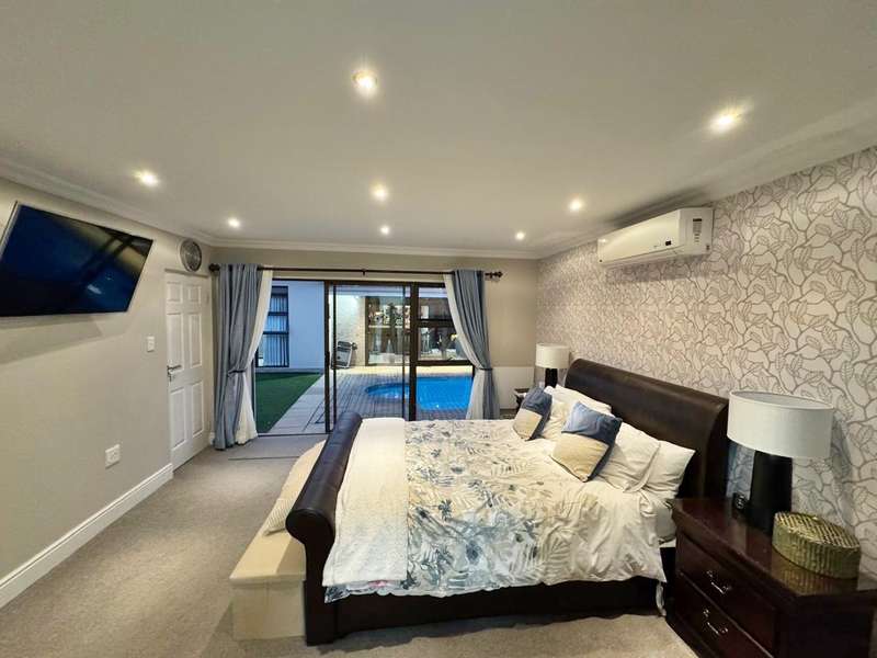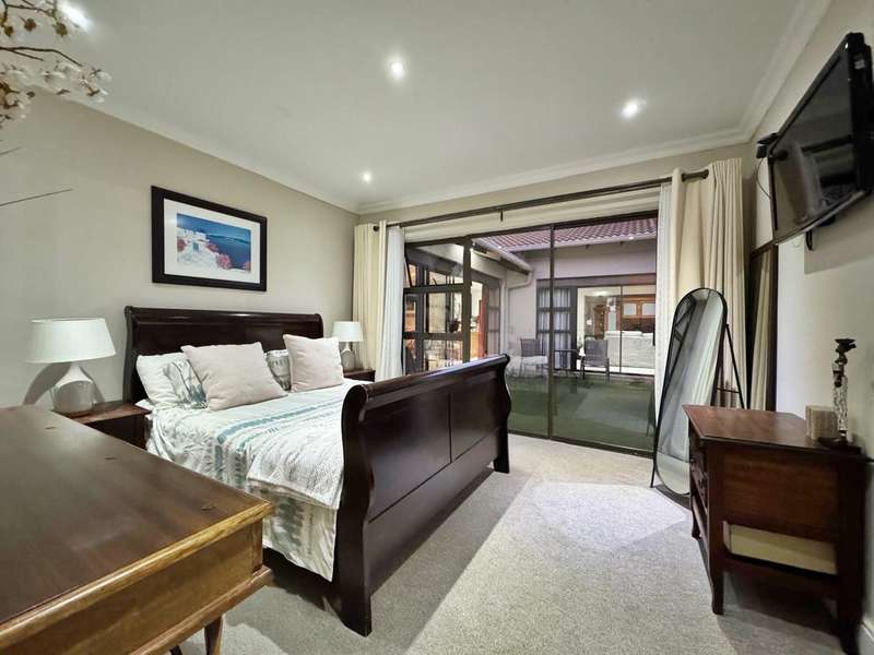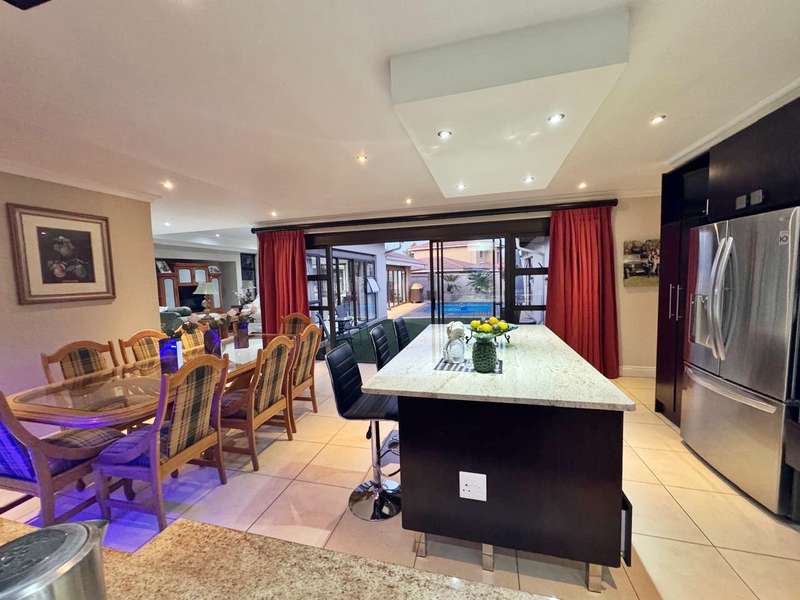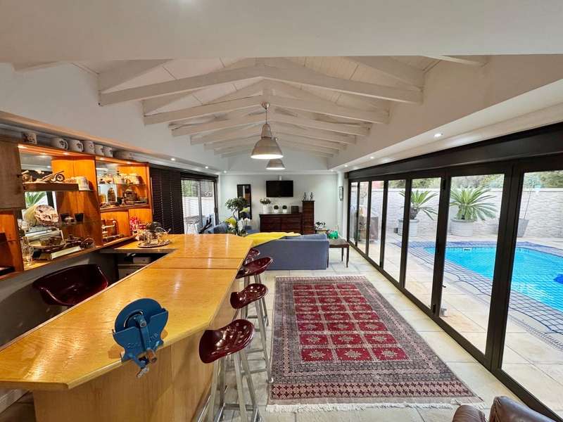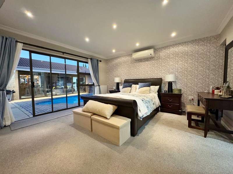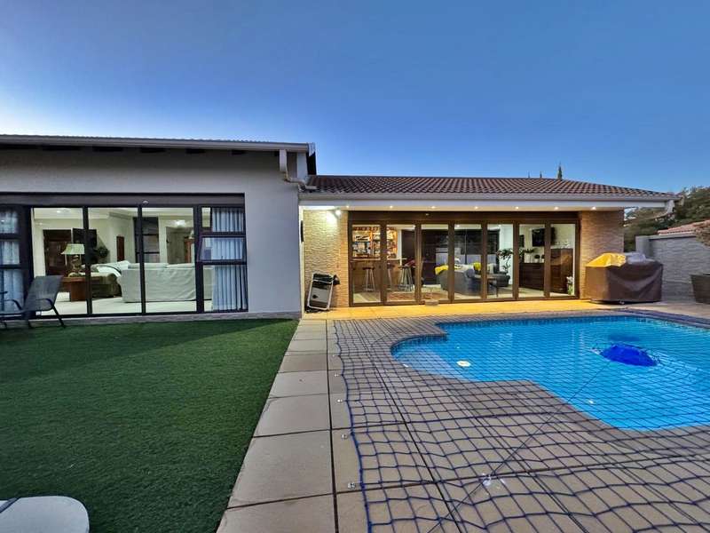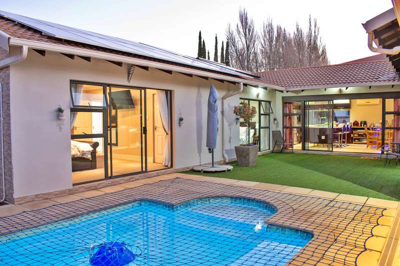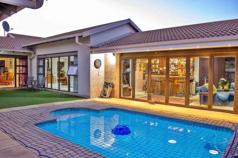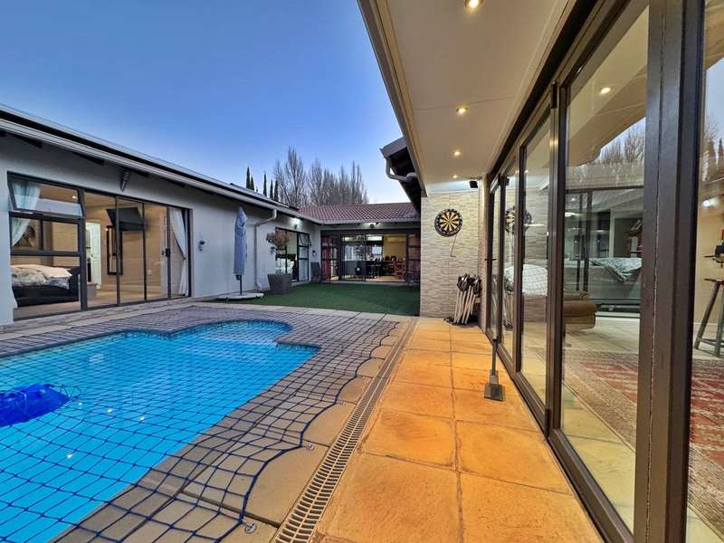 Nestled in a quiet street in the heart of Woodland Hills Wildlife Estate, this beautifully designed home offers the perfect blend of luxury, comfort, and functionality. With 4 bedrooms and 3.5 modern bathrooms, this property is ideal for families who love to entertain and enjoy seamless indoor-outdoor living. The open-plan living, dining, and kitchen area creates a welcoming flow, perfect for both everyday family life and special gatherings. The stylish kitchen is well-equipped and centrally located, making it the true heart of the home. An entertainment room complete with a built-in bar adds the perfect touch for hosting friends and family, all while overlooking the sparkling swimming pool. Most of the bedrooms and living areas open with doors leading directly to the pool, ensuring easy access and a continuous connection to the outdoors. Additional features include: • Domestic room with en-suite bathroom • Solar system for energy efficiency • Water tank connected to gutters for added sustainability • Secure estate living with abundant wildlife and natural beauty • Four garages offering ample parking and storage This home offers so much more than meets the eye – it’s a lifestyle choice for those who appreciate peace, privacy, and a touch of luxury. Don’t miss this rare opportunity to own a move-in ready home in one of Bloemfontein’s most sought-after estates.