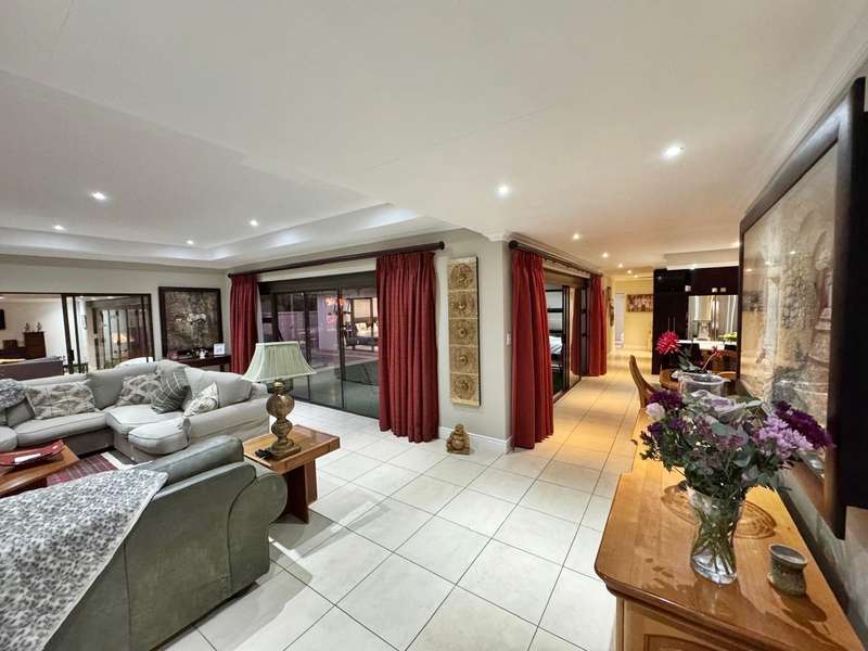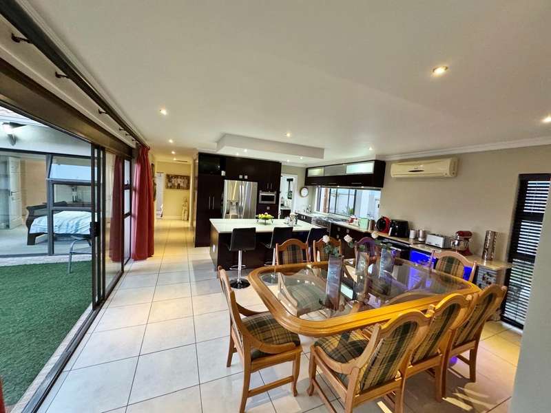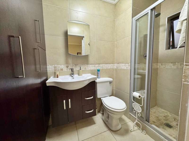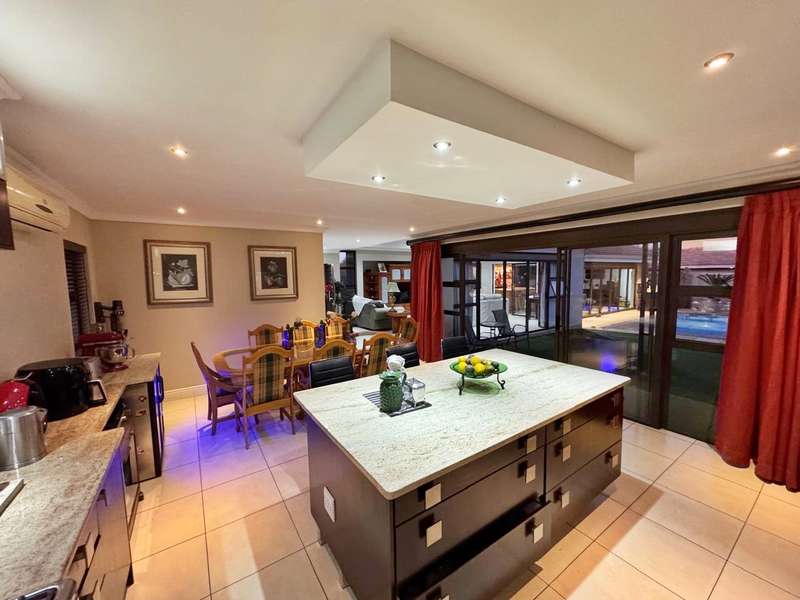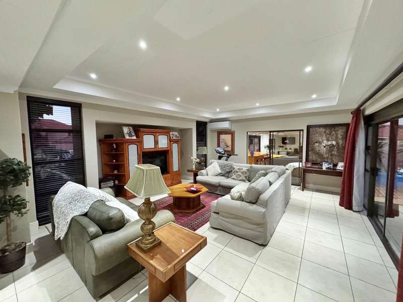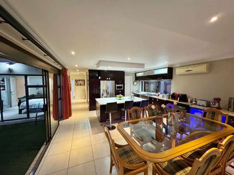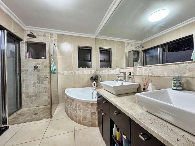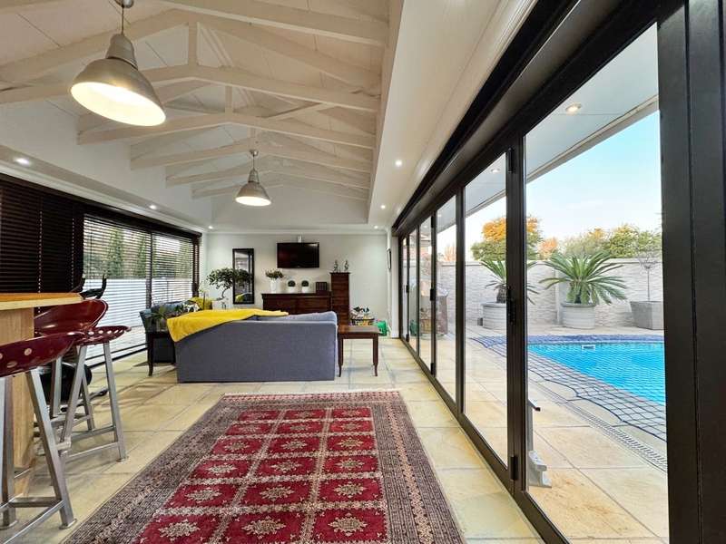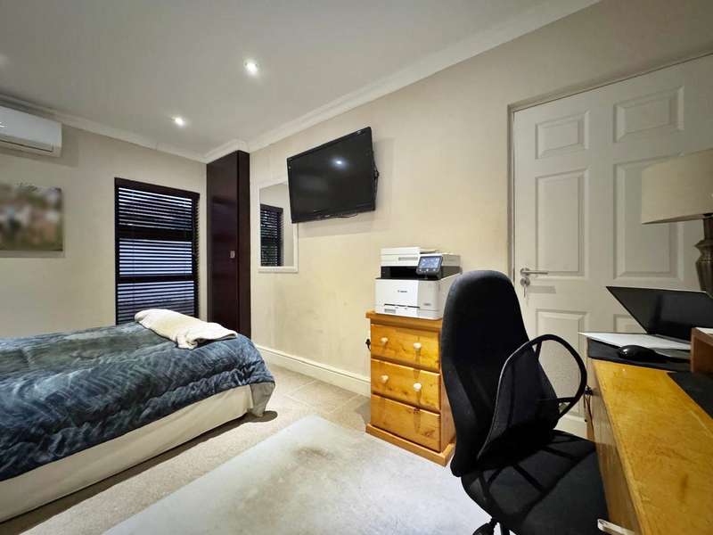 Nestled in a quiet street in the heart of Woodland Hills Wildlife Estate, this beautifully designed home offers the perfect blend of luxury, comfort, and functionality. With 4 bedrooms and 3.5 modern bathrooms, this property is ideal for families who love to entertain and enjoy seamless indoor-outdoor living. The open-plan living, dining, and kitchen area creates a welcoming flow, perfect for both everyday family life and special gatherings. The stylish kitchen is well-equipped and centrally located, making it the true heart of the home. An entertainment room complete with a built-in bar adds the perfect touch for hosting friends and family, all while overlooking the sparkling swimming pool. Most of the bedrooms and living areas open with doors leading directly to the pool, ensuring easy access and a continuous connection to the outdoors. Additional features include: • Domestic room with en-suite bathroom • Solar system for energy efficiency • Water tank connected to gutters for added sustainability • Secure estate living with abundant wildlife and natural beauty • Four garages offering ample parking and storage This home offers so much more than meets the eye – it’s a lifestyle choice for those who appreciate peace, privacy, and a touch of luxury. Don’t miss this rare opportunity to own a move-in ready home in one of Bloemfontein’s most sought-after estates.