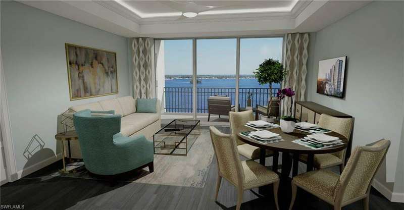 C.17866 -This captivating pre construction waterfront condo features a stunning view of the Caloosahatchee River Estuary. Luxury fixtures, finishings & appliances come standard, with additional upgrades and full customization available. Prima Luce's resort-inspired amenities include a zero-entry heated swimming pool, whirlpool, yoga studio & fitness center, library and business center & a community social space complete with catering kitchen. Each residence includes one lobby-level storage locker & one covered parking space in the secured private parking garage. Additional parking spaces are available for purchase. Pet-friendly Prima Luce on the Waterfront is located on the shores of the Caloosahatchee in the Historic River District of Downtown Fort Myers, Florida, & is only a short walk, drive or bike-ride from fine dining & shopping, a vibrant arts & entertainment scene, numerous local festivals & events, boating & nature activities, & so much more! The PALERMO floor plan is located on floors 2-22 of the West Tower and floors 2-21 of the East Tower, with water views from every residence. Additional availability and pricing upon request. Sales office located at 2235 First Street