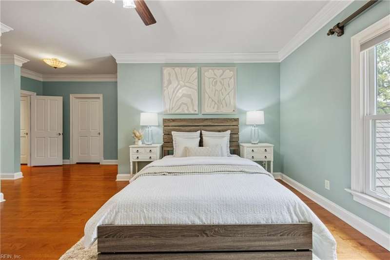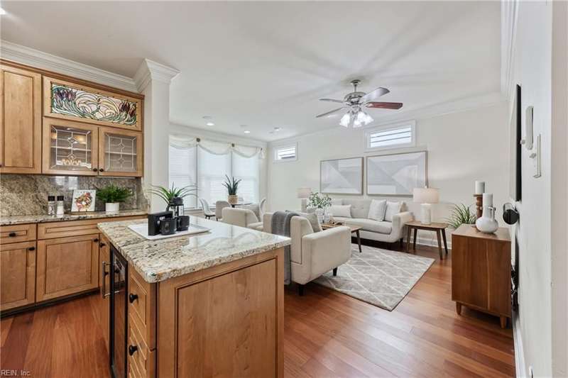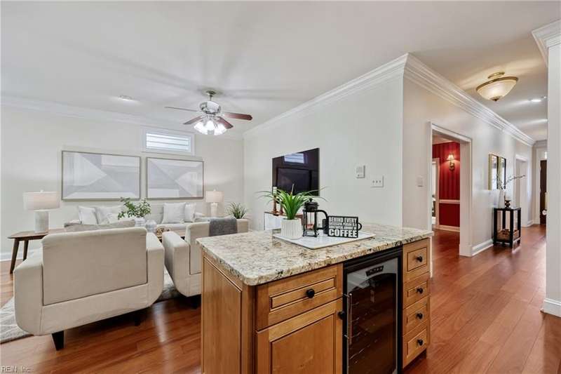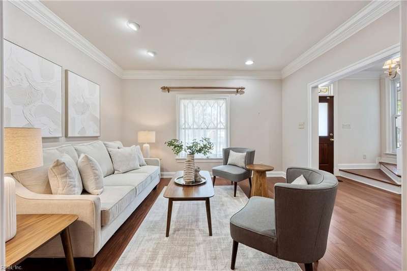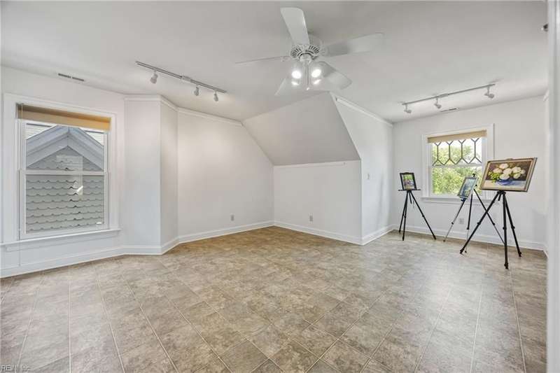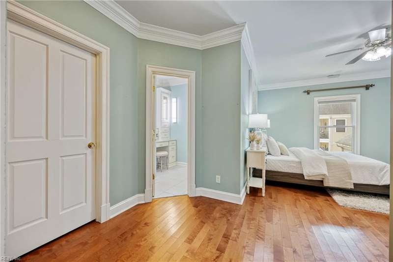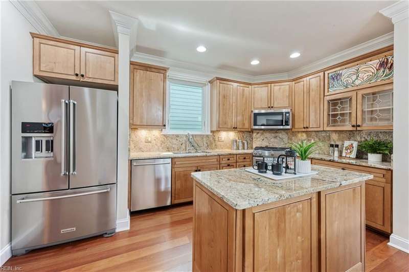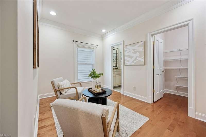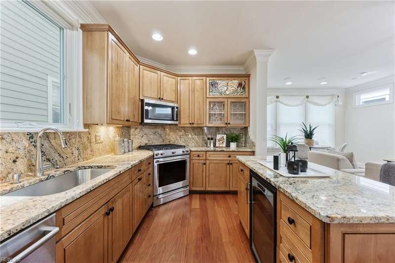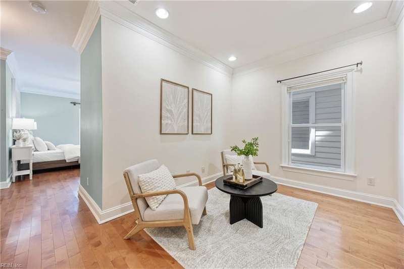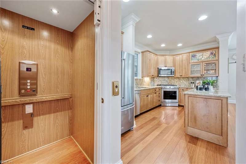 Fantastic Victorian Reproduction in Olde Towne. One owner home customized with numerous high-end upgrades (Over $218,000.00 in improvements). Renovated kitchen with custom cabinets, granite countertops, stainless steel appl. and island w/ open concept to great room. High end primary suite with attached sitting room and spa like ensuite: glass enclosed, custom tiled shower, double sink vanity & additional vanity with vertical storage. Additional guest bedroom on front of home with attached en-suite for privacy. Third floor consists of specially designed rooms: 1) A home office and 2) An artist's studio with specific lighting, storage/attached bathroom, both w/ access by elevator from all three floors. Owners have pre-list appraisal. Attached double garage with custom storage and room for expansion above. Close to cafes, museums, restaurants, farmers market, Commodore Theatre. Easy access to Norfolk via ferry and nearby Ports. Naval Medical Center, Norfolk Naval Ship. & Coast Guard Base.