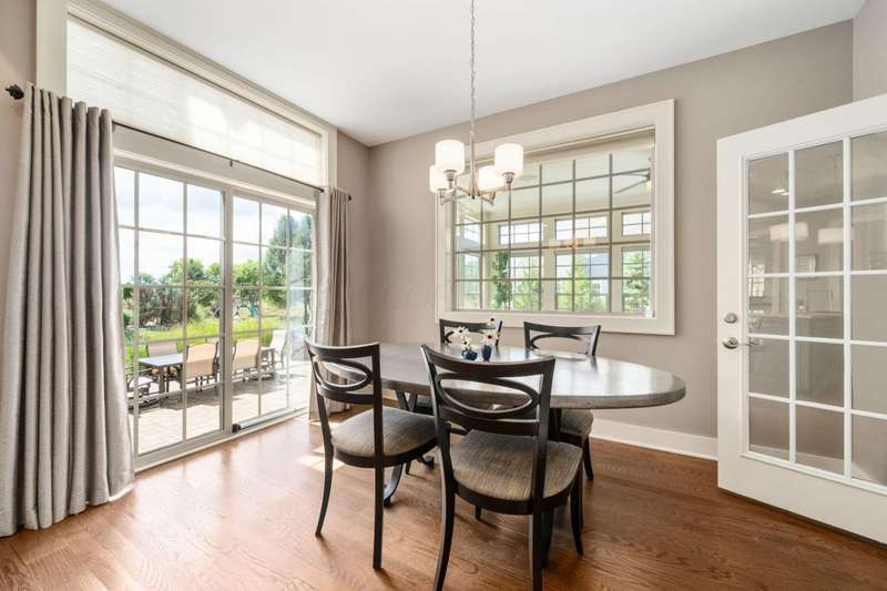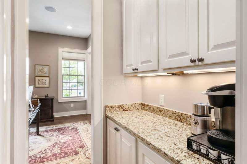 Welcome to a beautifully crafted home where timeless design meets exceptional functionality. From the moment you enter, you'll notice the warmth of rich millwork, custom cabinetry, built-ins, and a stunning open layout anchored by a gourmet kitchen with double islands???perfect for gathering and entertaining. The main floor offers flexible living spaces, including a bright and inviting sunroom and a unique indoor grill room with vent hood for year-round enjoyment. Upstairs, the luxurious primary suite is a true retreat, featuring a private second-story deck, a spa-like bath with an oversized shower and dual shower heads, and a massive custom walk-in closet complete with center island and thoughtfully designed storage. Three additional bedrooms, two full bathrooms, and a generous laundry room complete the upper level. The finished lower level expands your living space with a home theater area, wet bar with refrigerator, full bath, wine room, and ample storage. Outdoor living is equally impressive, thanks to a brand-new oversized paver patio???ideal for entertaining or relaxing. In addition to a 3-car garage, a separate 2-car space has been transformed into a fully finished dance studio with a private entrance???perfect for a home gym, personal training, or creative flex space. Located near the semi-private Golf Club of Dublin, city pools, parks, splash pad, and scenic trails???with quick access to 33 and 270???this home offers the perfect blend of comfort, luxury, and community. Updates: Roof 2022, Tankless hot water heater 2020, Patio 2020, Refrigerator 2021, Paint updated throughout, Dance studio added in the additional 2 car garage space, wine room added 2018.