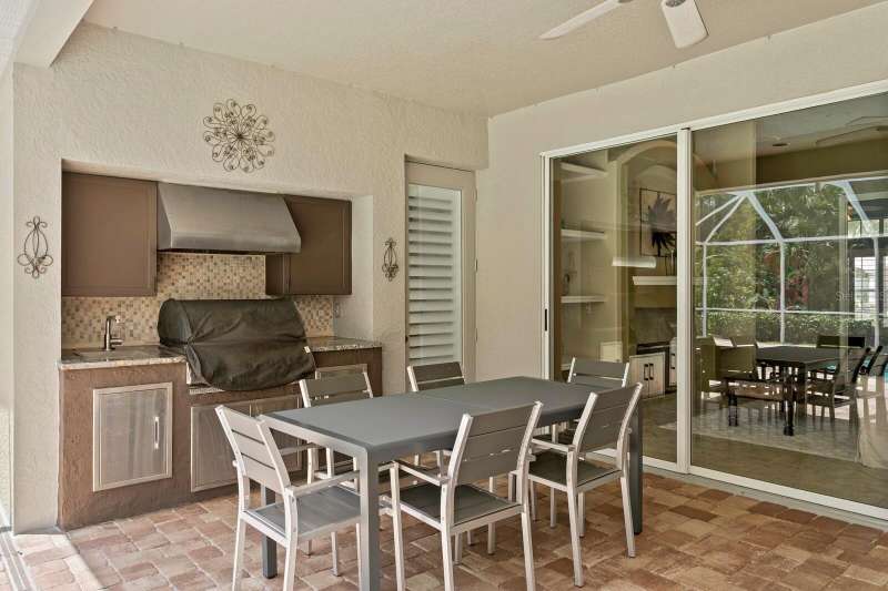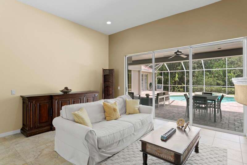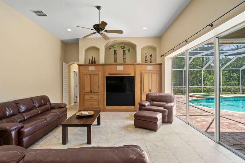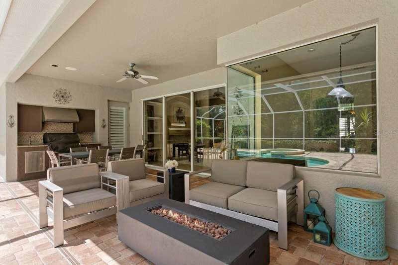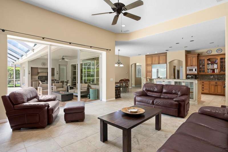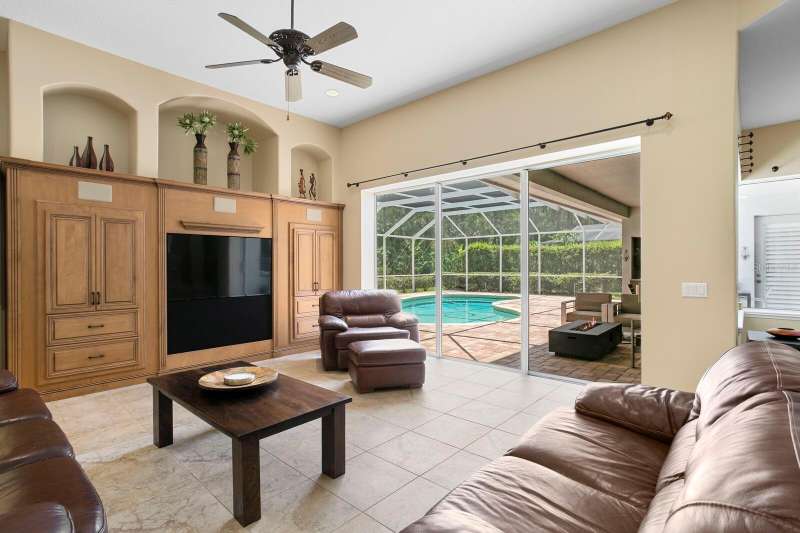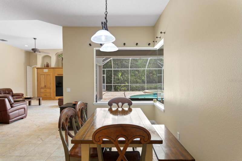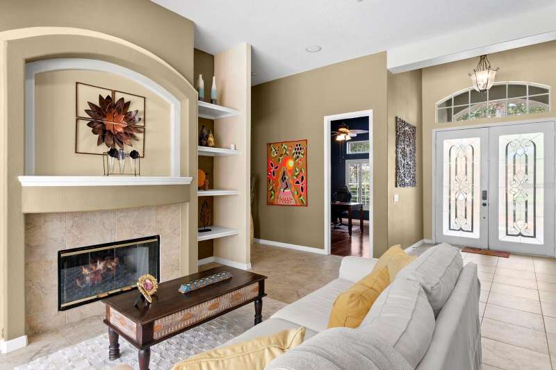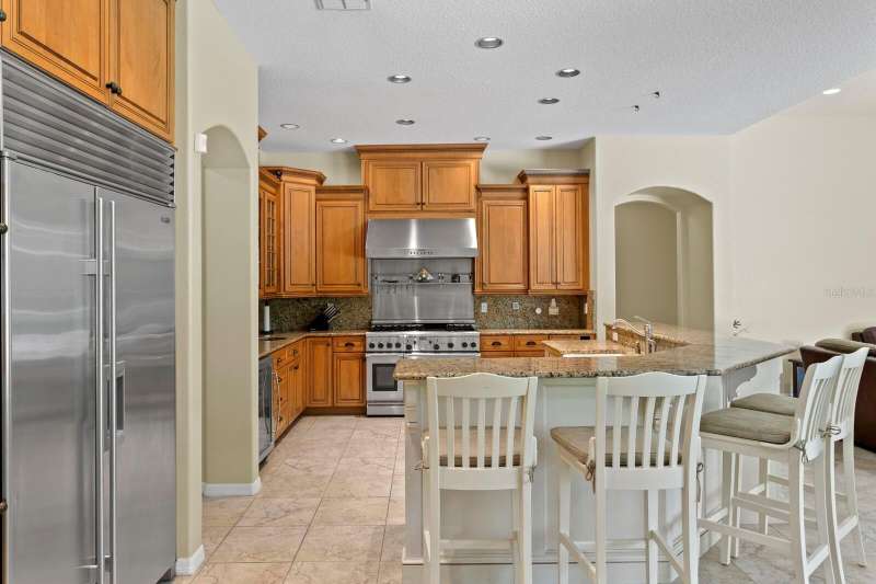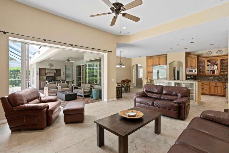 Welcome to refined living in Arbor Greene’s exclusive guard-gated community. Perfectly situated on a premium conservation lot, this beautifully maintained Hannah-Bartoletta home offers 5 bedrooms, 3.5 bathrooms, a private office, and a versatile bonus room that can easily serve as a fifth bedroom. As you enter, you're immediately welcomed by a formal living room that exudes warmth and tranquility, highlighted by a gas fireplace, custom built-in shelving, and serene views of the pool and lush conservation area. Just off the living room, the spacious formal dining room offers the perfect setting for entertaining and holiday gatherings. Flowing from the formal areas, you are greeted by the kitchen which is a chef’s dream. This high-end space features Omega staggered cabinetry with intricate crown molding, thick granite countertops and backsplash, a Thermador gas range with dual ovens, 6 burners and griddle, Fisher & Paykel dual “drawer” dishwasher with wood paneling, a 48" built-in Sub-Zero refrigerator, wine cooler, trash compactor, dual sinks, and a built-in microwave. The family room is anchored by a custom built-in entertainment center and is designed with entertaining in mind, featuring pocket sliding glass doors that open fully to the patio and pool area, creating an effortless indoor-outdoor living experience. The private office showcases rich hardwood flooring, and tile flows throughout the main living areas, enhancing the home’s clean and cohesive design. The home’s thoughtful split-bedroom floor plan ensures maximum privacy for the secondary bedrooms, while the primary suite enjoys its own quiet retreat. The bonus room, ideal as a fifth bedroom, playroom, or media space, adds value and flexibility to the layout. Step outside to your private backyard oasis featuring an extended pavered lanai, a heated pool with peaceful conservation views, and a built-in outdoor kitchen, perfect for cookouts, entertaining, and making the most of Florida’s year-round sunshine. Recent updates include a brand new HVAC system (2025), freshly landscaped grounds (2025), and a water heater replaced in 2023. Additional features include a whole-home water softener system for added comfort and care. As a resident of Arbor Greene, you’ll enjoy resort-style amenities including two community pools, a fitness center, Har-Tru tennis courts, playgrounds, and miles of scenic walking trails. Located near top-rated schools, I-75, Wiregrass Mall, and excellent medical and dining options, this home offers the very best in luxury, location, and lifestyle.