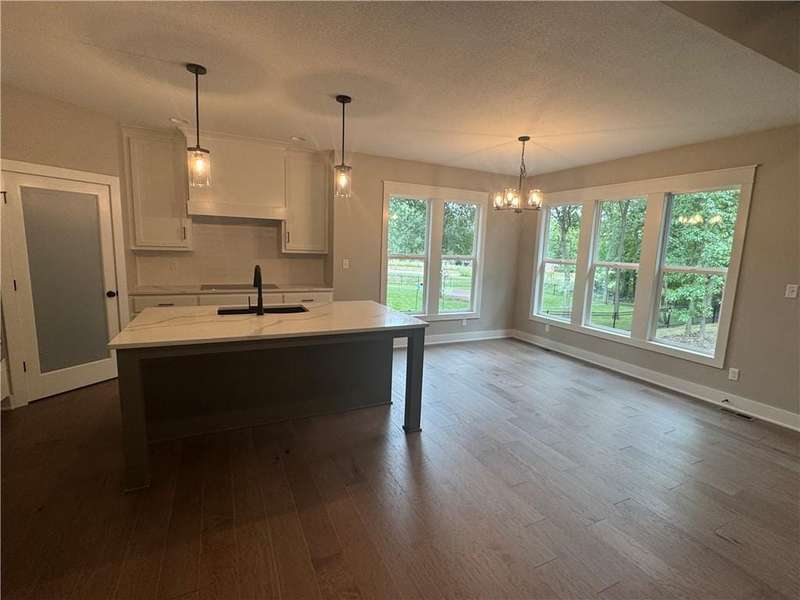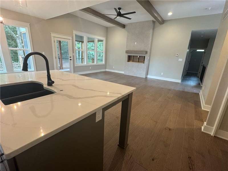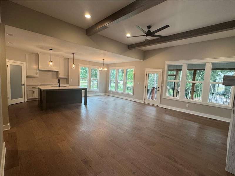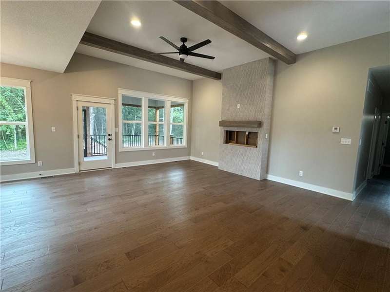 Set on a spacious lot with mature trees, this stunning home offers comfort, style, and privacy. Located in a small subdivision off the beaten path, youll love the quiet setting and space between neighbors. The open floor plan features a chefs kitchen with quartz countertops, painted cabinets, large island, walk-in pantry, and premium appliances. The living area boasts 12 ceilings with wood beams, and floor-to-ceiling tile fireplace. The primary suite includes a walk-in closet, double vanity, and tiled shower. Enjoy outdoor living on the screened-in deck with stairs to the backyard. The full unfinished basement with egress windows is ready for your vision. Energy-efficient HVAC with humidifier provides year-round comfort. Dont miss this beautiful home in a peaceful settingschedule your showing today!