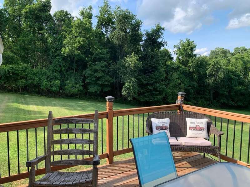 Imagine breathtaking sunrises and enjoying peaceful evenings with stunning, panoramic woodsy views from your private deck! This charming 2-bedroom country farmhouse offers the perfect blend of rustic charm and modern comfort, all nestled on a spacious acre+! A perfect serene retreat where you will enjoy ample space for gardening, outdoor activities, and enjoying the fresh country air, this place has a detached garage with additional off street parking, light-filled and airy living spaces, ideal for entertaining or relaxing! Equipped kitchen, formal dining room, main level laundry, rich wood floors, and plenty of storage space! The gorgeous views are exquisite to unwind and take in the stunning natural beauty that surrounds you, so you can experience the tranquility of rural living while still being a short drive to nearby amenities and attractions. Just minutes to the Mon River, too!