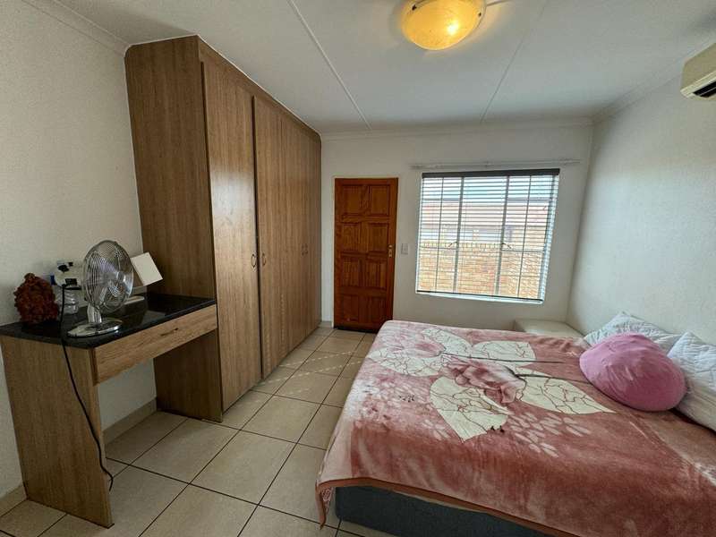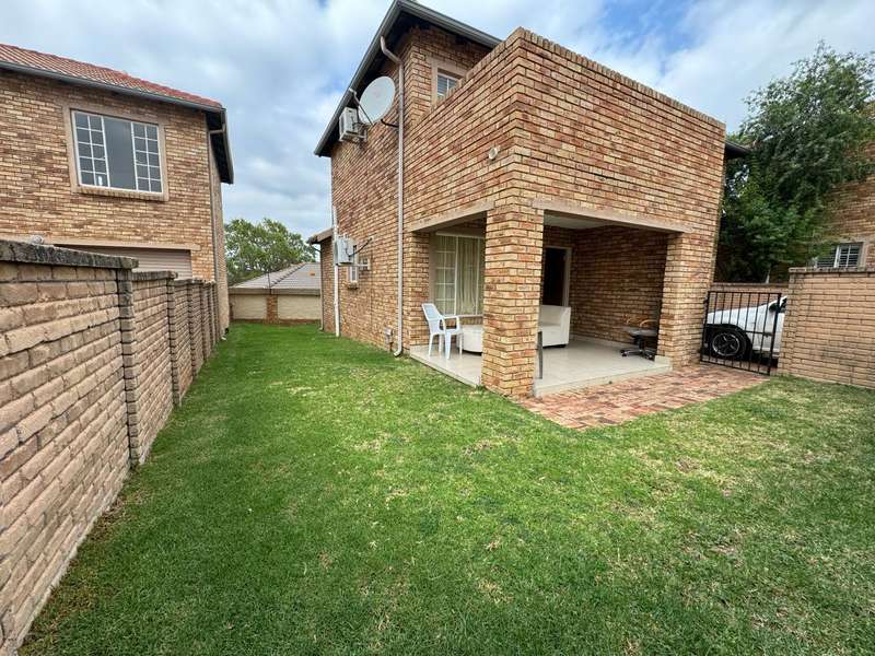 Modern Duplex Townhouse in Cosmos View Estate Open plan lounge/dining room with a modern kitchen, 3 bedrooms, 2 bathrooms, and double garages, with air-conditioners in all bedrooms and the lounge. Main bedroom has ensuite with shower, basin and toilet with your own private balcony with a stunning view of Kosmosdal. A large, private, established garden. Linen cupboard for the extra space. Cosmos View Estate is situated in Kosmosdal, which is central to both Centurion and Midrand. It has been described as cosy, comfortable, and compelling. Among the amenities around our area are the Blue Valley Mall, Centurion, and Midrand Gautrain stations. The estate was established in 2007 and has evolved a lot since then. Cosmos View residents are also blessed with extraordinary common grounds, including a tennis court, clubhouse with braai facilities, and a vast green lawn for relaxation and enjoyment. Come view today and move in before Christmas!