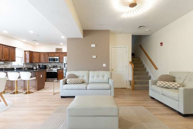 Welcome to 6 Knotts Street in Hudson's desirable Knott's Clearing! Built in 2005, this well-placed townhouse offers 1,665 sq. ft. of bright, open living space. The modern kitchen features granite counters, stainless steel appliances, and a breakfast bar. The dining area leads to a private deck, ideal for BBQs. A spacious living room boasts cathedral ceilings, hardwood floors, and a cozy gas fireplace. Upstairs, you'll find two bedrooms, including a main suite with a full bath, plus a second full bath and laundry. The finished basement adds bonus space perfect for an office or rec room with access to the one-car garage and private driveway. Enjoy central heat/AC, low-maintenance living, and close proximity to downtown shops, dining, and highways. A must-see!