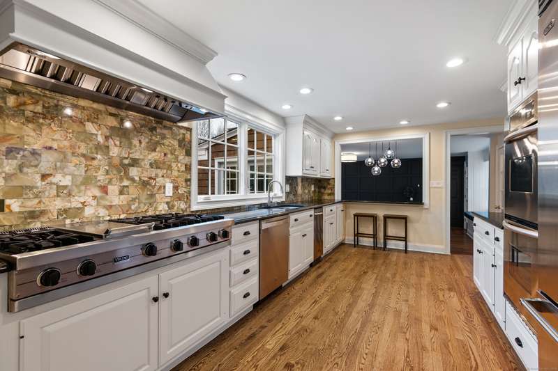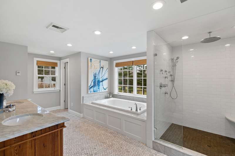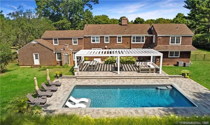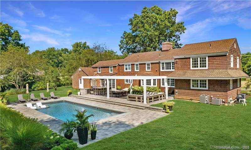 Rare offering on sought-after Tanner Marsh Road! This elegant home stuns from the street with its stone walls, circular driveway, and professionally landscaped grounds. Designed for entertaining, its rooms offer exceptional grace and flow. Three fireplaces, chef's kitchen with Viking appliances, first-floor guest suite with bath and private entrance - this home has it all! Master bedroom with tranquil sitting area, extravagant dressing room, and spa-like marble bath. Four more bedrooms, office, bath, and laundry upstairs. Then, step into the backyard to your own private oasis, an entertainer's dream. Heated in-ground saltwater pool surrounded by mature trees. Full outdoor kitchen with granite island, gas fire-pit, hot tub, and dining/lounge areas under new Azek pergola. Perfectly located near the scenic trails of East River Preserve and just minutes to I-95, the award-winning Guilford Green and Jacobs Beach, this rare gem is move-in ready and waiting to welcome you home.