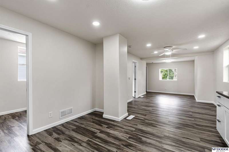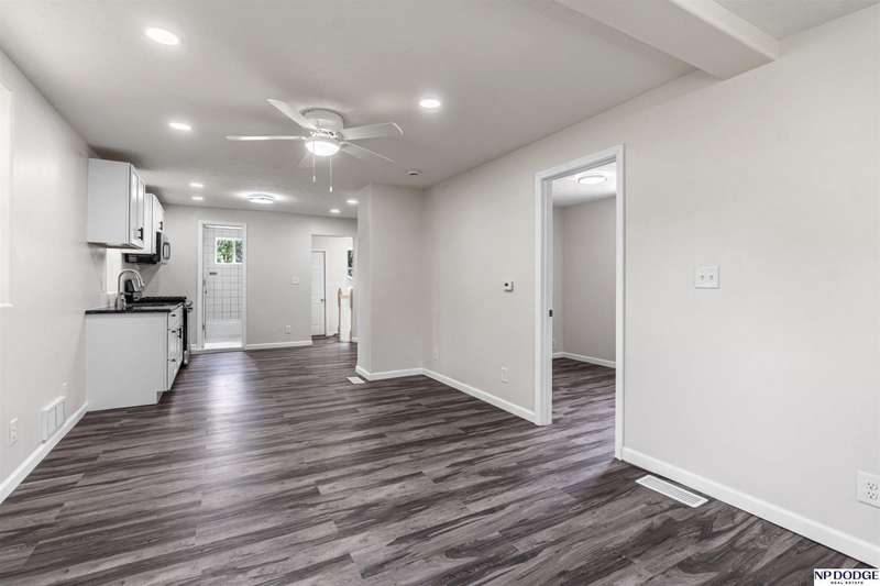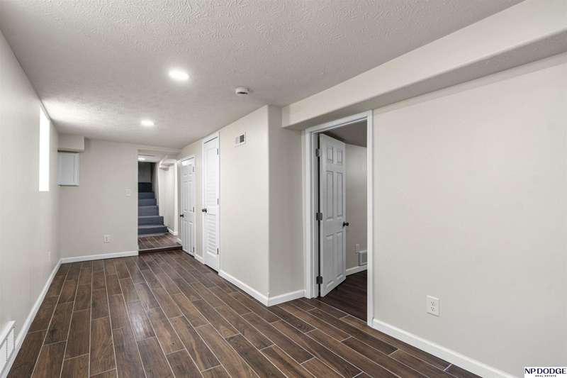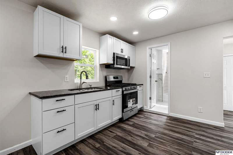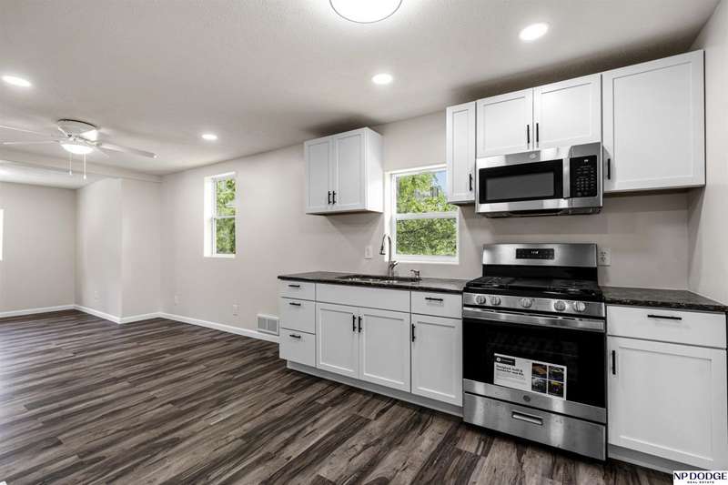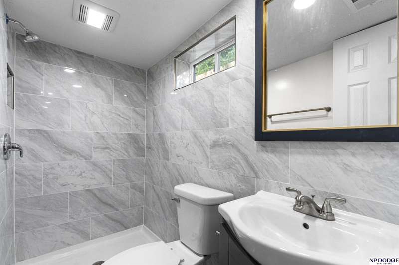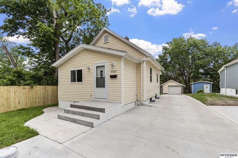 Completely remodeled ranch. New roof, siding, windows, kitchen, bathrooms, flooring, light fixtures, plumbing, electrical, a/c, water heater, driveway, newer furnace. Basement fully finished with non conforming 3rd bedroom and a 3/4 bathroom. Features a full lot, garage with a shed behind it, and with long driveway. In city yet a private street. Walking distance to middle school. Close to South Omaha's 24th Street business corridor and several parks. 5437 S 18th St also for sale so you can tell your friends and family.