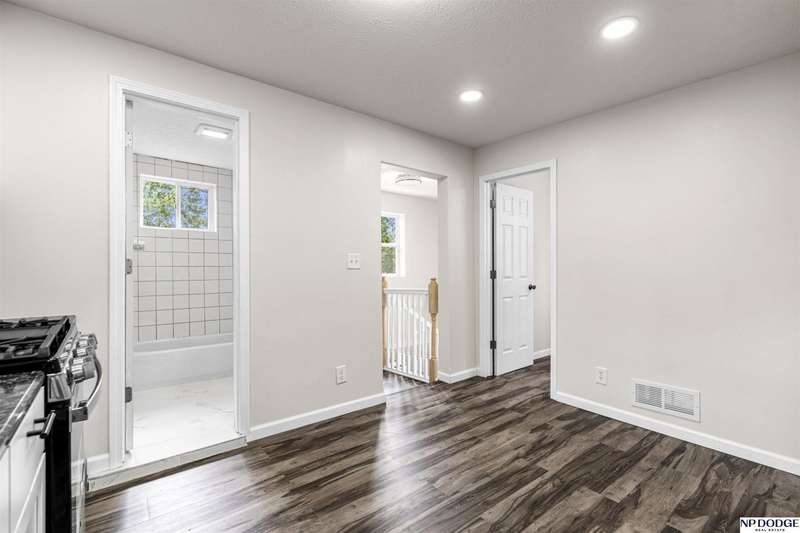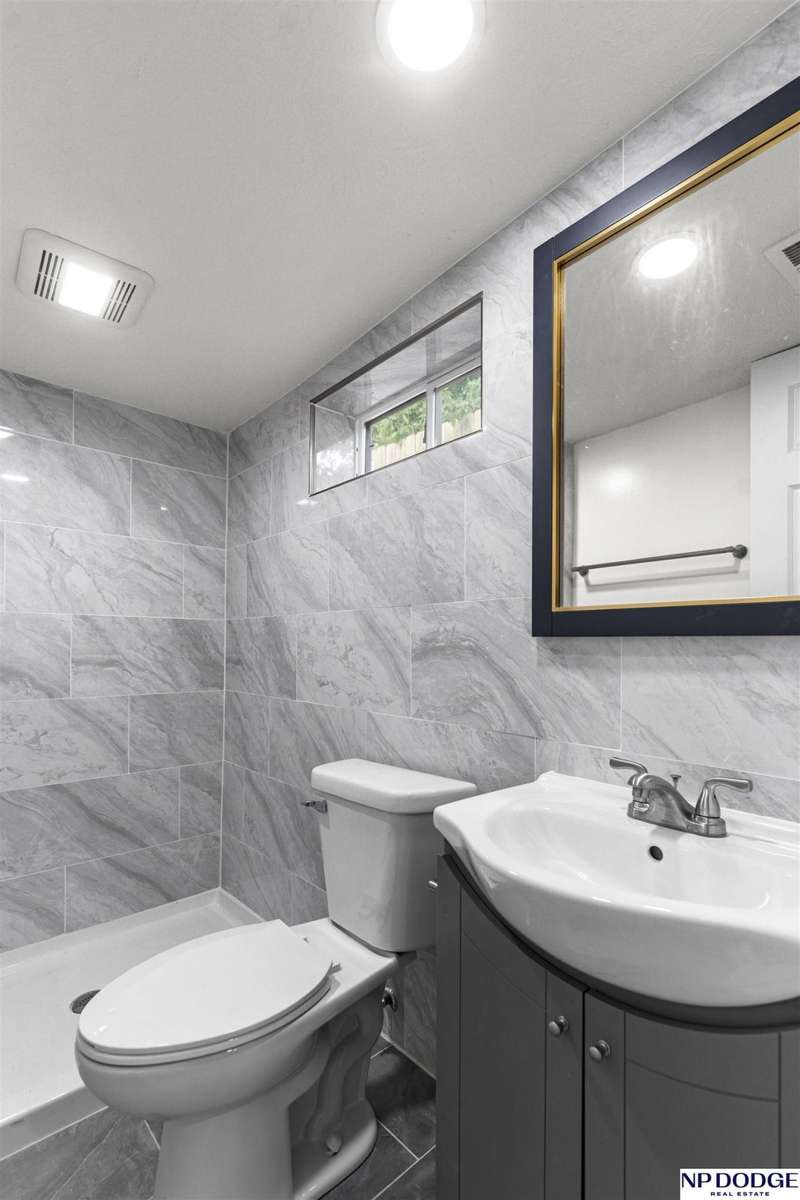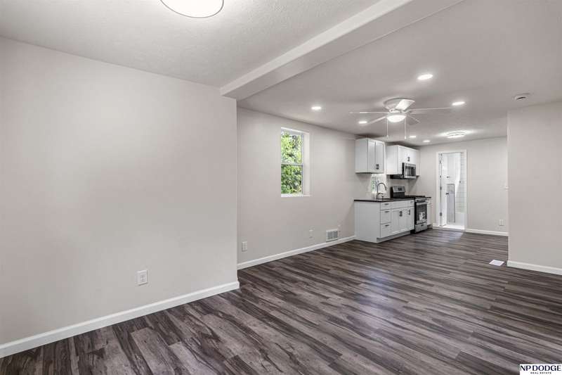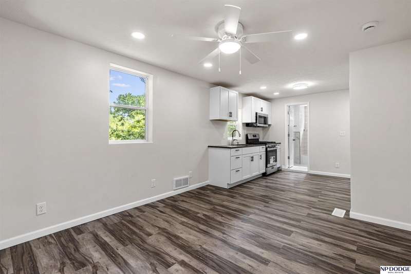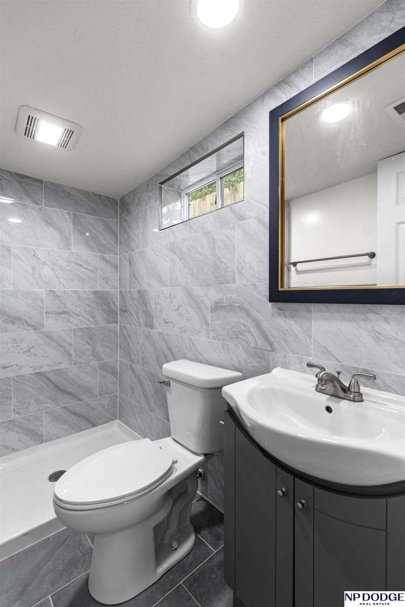 Completely remodeled ranch. New roof, siding, windows, kitchen, bathrooms, flooring, light fixtures, plumbing, electrical, a/c, water heater, driveway, newer furnace. Basement fully finished with non conforming 3rd bedroom and a 3/4 bathroom. Features a full lot, garage with a shed behind it, and with long driveway. In city yet a private street. Walking distance to middle school. Close to South Omaha's 24th Street business corridor and several parks. 5437 S 18th St also for sale so you can tell your friends and family.