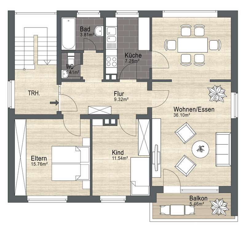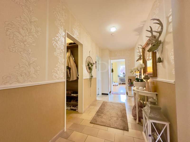 This well-kept and regularly renovated apartment offers modern comfort and a well thought-out room layout on approx. 87 m² of living space in a three-party house built in 1966. The residential unit is located on the 1st floor and is of interest to both owner-occupiers and investors, as it is currently rented out. Upon entering the apartment, you enter an inviting hallway area that connects all the rooms. The apartment has a total of 3.5 rooms, providing a cozy home for every resident. The light-flooded living area provides access to the south-west-facing balcony, which offers plenty of natural light and invites you to spend relaxing hours in the fresh air. The balcony is ideal for relaxing in the evening or enjoying the south-facing sun. Two spacious bedrooms offer plenty of room for personal design options. The daylight bathroom is equipped with a bathtub. The central heating ensures pleasant living conditions at any time of year. Each apartment is equipped with its own gas condensing boiler (2011), which works efficiently and economically. The private garden area belonging to the apartment offers particular added value. This is ideal for a wide range of leisure activities and offers a green oasis for outdoor relaxation. This area offers additional benefits and increases the attractiveness of the apartment. The property is part of a manageable residential building with just three units, with each unit comprising its own floor. This guarantees a high degree of privacy and a pleasant neighborhood. The apartment's furnishings meet the requirements of everyday living. The well-kept building fabric and regular modernizations, such as windows and blinds (2015), bathroom (2003), balcony (2006), contribute to a pleasant living experience. This property is not only a home, but also an interesting option for investors due to the rental income. If you are interested in a viewing, do not hesitate to make an early appointment to see the advantages of this apartment for yourself. Take the opportunity to acquire a residential-friendly and well-located apartment that is suitable both for owner-occupiers and for renting out.