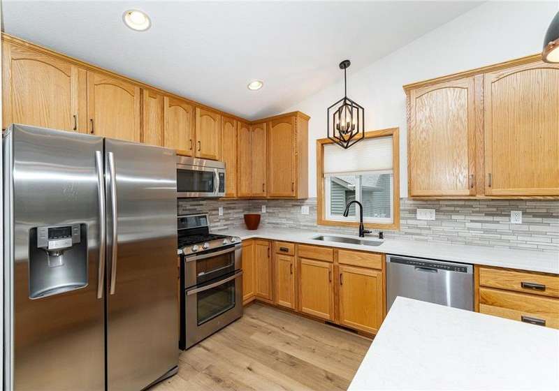 Main-floor living at its finest! Welcome home to this beautifully maintained walk-out ranch in a peaceful, mature neighborhood. Step inside to brand-new hardwood laminate flooring, a cozy stone-surround fireplace, and an open layout that flows into the updated kitchen with quartz countertops, stylish backsplash, stainless steel appliances, and a dining area that opens to a deck—perfect for enjoying your morning coffee or watching sunsets over the rolling Rochester hills. The main level features 2 spacious bedrooms, including a primary suite with a walk-in closet and private en-suite bath, plus a convenient laundry room with utility sink and cabinetry. The finished walk-out lower level is ideal for entertaining, with new LVP flooring, a large family room with wet bar, a 3rd bedroom, a full bath, and room to add a 4th bedroom if desired. Outside, enjoy a beautiful landscaped yard with area for nice firepit. Close to schools, parks, shopping, restaurants, and medical facilities—this move-in ready home offers quality updates, plenty of space, and incredible value compared to today’s build costs. Don’t miss your chance to make it yours!