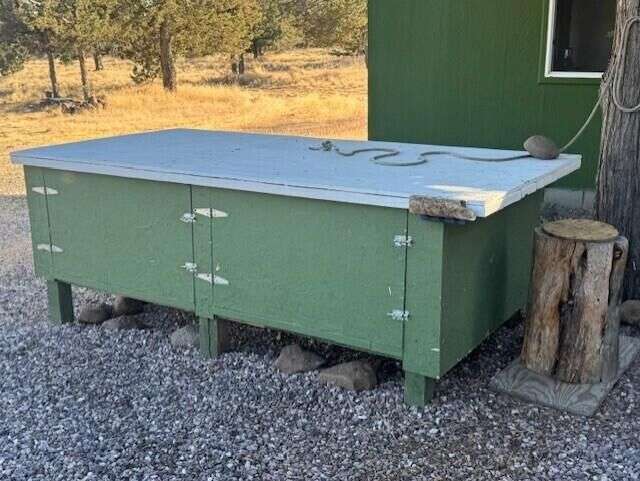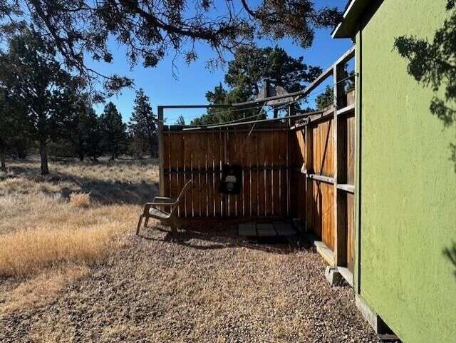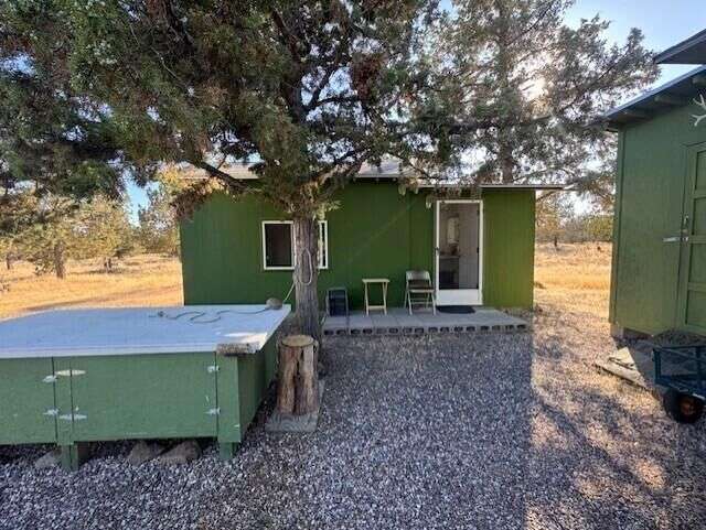 Tucked away on this level 5 acre parcel is a tiny off-grid home for your convenience while adding your new manufactured or custom home. This is a great parcel if you are wanting privacy, room for your shop and/or barn and a nice neighborhood not far from the Fire Hall. If you are only looking for a ''cabin in the woods,'' this off-grid home could be the right one for you. The main living area is 168 SF with a small kitchen area attached. There is a frost free hydrant close by connected to Crooked River Community Water and you can use the sun to power up your appliances or lights. Truly a one-of-a-kind property with an outstanding location. Appointment only please.