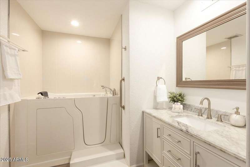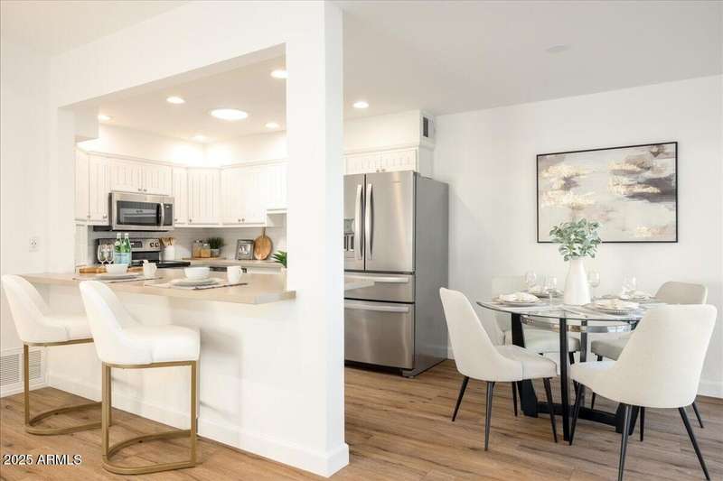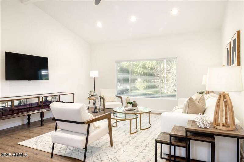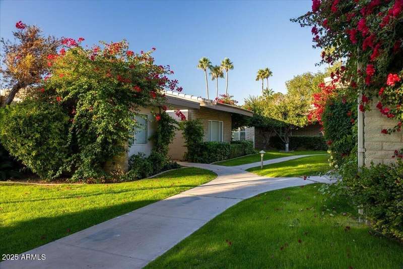Situated within a lush, guard-gated 40+ acre community of 261 residences, this move-in-ready patio home offers the perfect blend of privacy, comfort, and convenience. The open, light-filled floor plan features a spacious north/south exposure with no neighbors above or below. Inside, you'll find two bedrooms and two baths, recently updated with luxury plank flooring throughout, remodeled bathrooms, and an upgraded kitchen with newer stainless steel appliances and quartz countertops. Residents enjoy a wealth of resort-style amenities, including a heated pool, private restaurant with room service, on-site hair salon, and 24-hour security patrol. Just a short walk to Fashion Square and Old Town Scottsdale's premier dining, shopping, and entertainment. Not age-restricted.