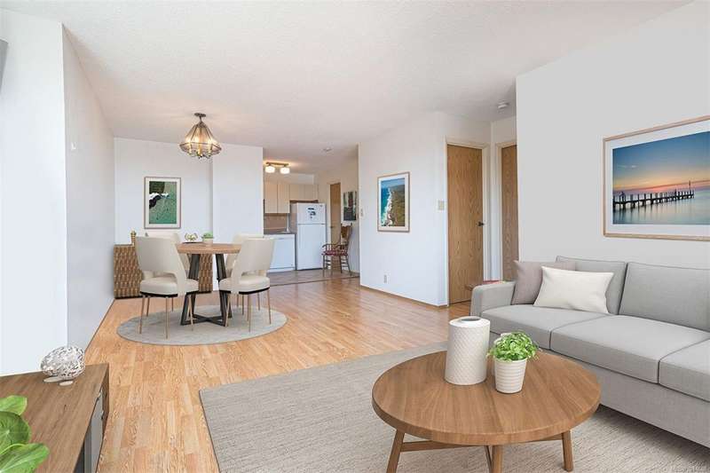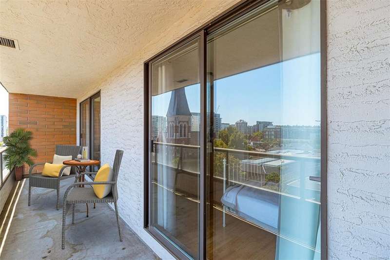 Priced Below Assessment! Modern open plan kitchen-living-dining layout for this generous sized One-Bedroom Condo, with huge private balcony accessed from both bedroom and living room, in North Park/Downtown Victoria! This well-maintained corner unit, located on the North East side of this steel & concrete building is perfect for first-time buyers or investors. There are excellent transit and bike routes to surrounding areas and schools. This flexible building allows rentals and pets and has no age restrictions. Extra amenities include a large laundry room, gym and steam room, bike racks and a meeting room with a 12th floor sundeck. The prime location offers easy access to trendy shops, delightful cafes, and local parks, making it a vibrant place to live. Please note there is a waitlist for storage and parking. This condo presents a rare opportunity in a central area and priced to sell. Bonus: hot water is included in the strata fee. Call your agent and book a showing before it's gone!