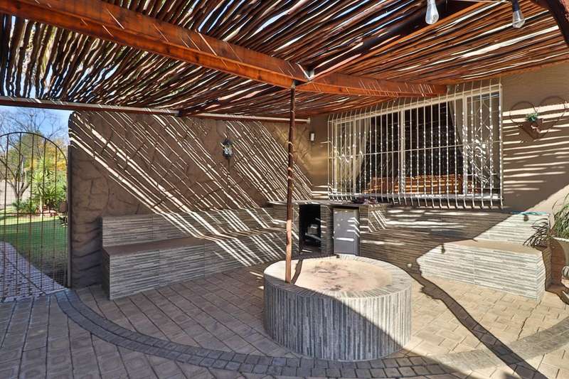 But the real highlight of this home lies in its entertainment features. Step outside to discover a haven for relaxation and fun, with an entertainment area boasting a built-in bar and braai, ideal for hosting unforgettable gatherings with friends and family. A cozy boma with a seated area sets the scene for evenings spent under the stars, while a sparkling pool provides a refreshing retreat on warm summer days.