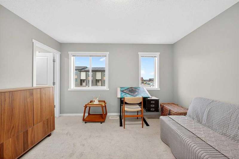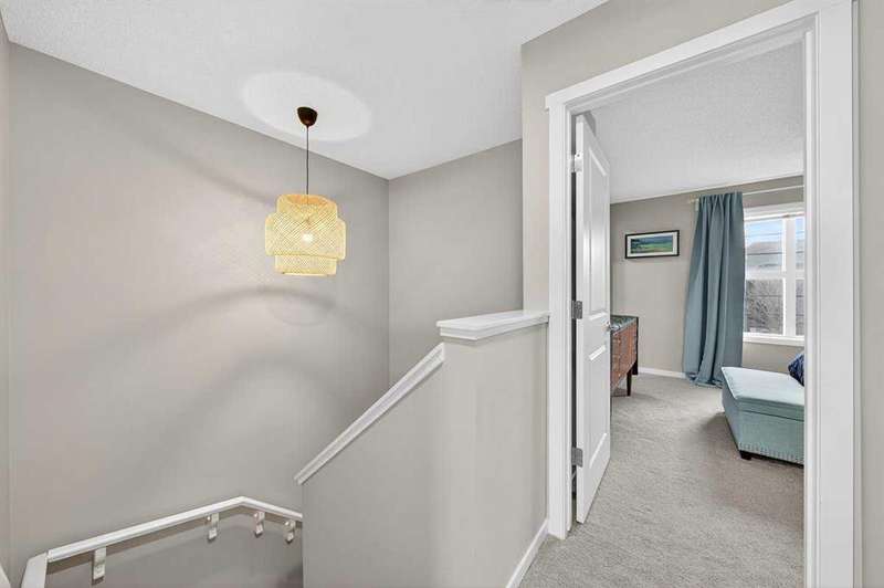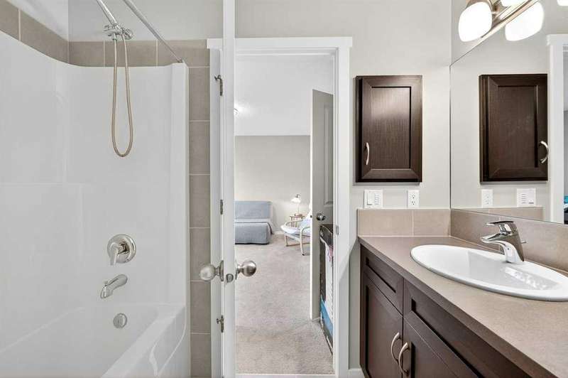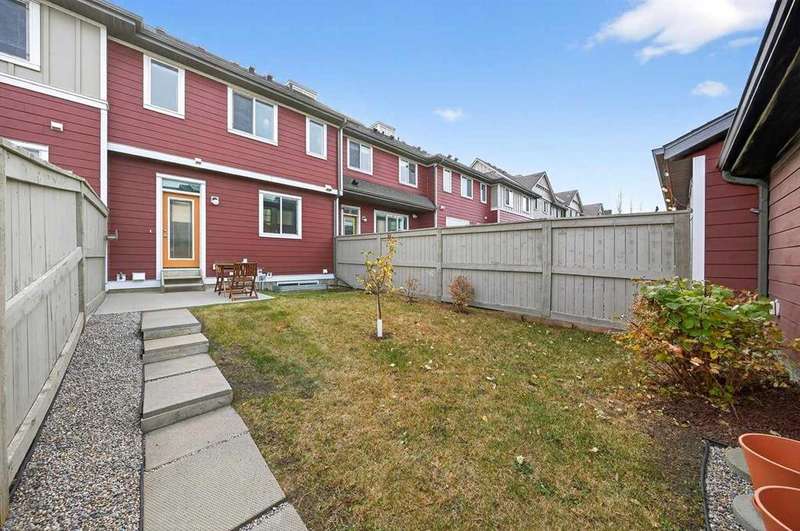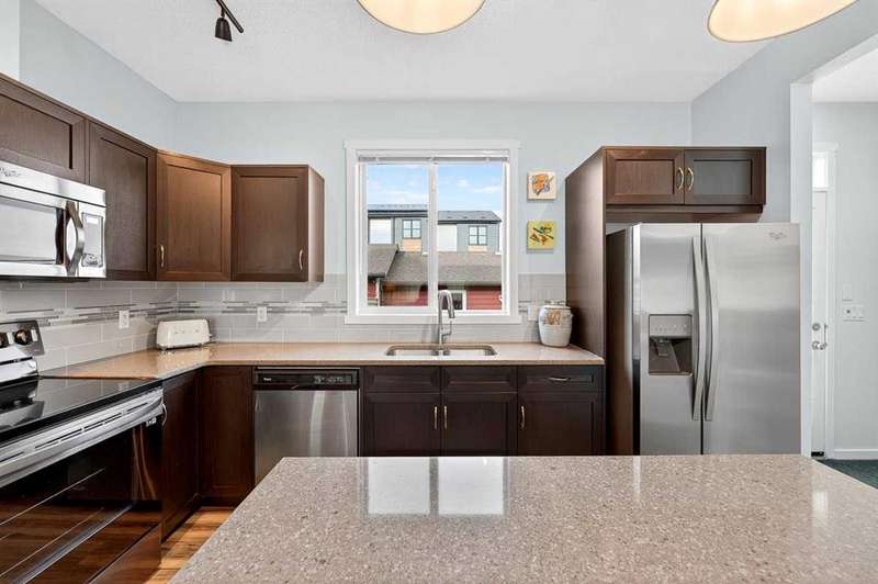 Welcome to this beautiful NO-CONDO-FEE townhome in the highly sought-after lake community of Mahogany, offering year-round access to the beach, clubhouse, and an array of outdoor amenities. This immaculate home combines comfort, functionality, and style, with a thoughtfully designed floor plan that takes full advantage of the abundant natural light streaming through the large windows. The main floor boasts 9-foot ceilings and an inviting open-concept layout that seamlessly connects the living, dining, and kitchen areas—perfect for both relaxing and entertaining. The kitchen is well-appointed with granite countertops, stainless steel appliances, and ample cabinetry, complemented by a blend of laminate and tile flooring that adds both warmth and durability. Upstairs, you’ll find two spacious primary bedrooms, each offering a walk-in closet and private ensuite for ultimate convenience and privacy. One of the bedrooms also includes a versatile den area, ideal for a home office or cozy reading nook. The unfinished basement provides plenty of potential for future development—whether you envision a recreation room, home gym, or extra storage space. Outside, enjoy a low-maintenance yard, a welcoming front porch, and a private backyard complete with a cement patio and gas grill hookup, perfect for summer barbecues and relaxing evenings. A detached double garage offers secure parking and additional storage. Recent upgrades include brand-new carpet (2025), a new hot water tank (2025), and a newer oven (2023), making this home truly move-in ready. With its excellent layout, modern finishes, and access to one of Calgary’s most desirable lake communities, this Mahogany townhome is a perfect blend of lifestyle and value.
