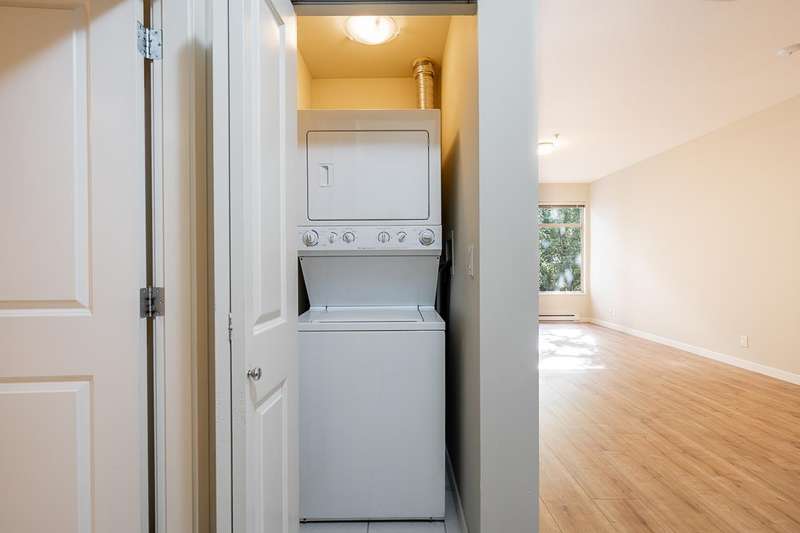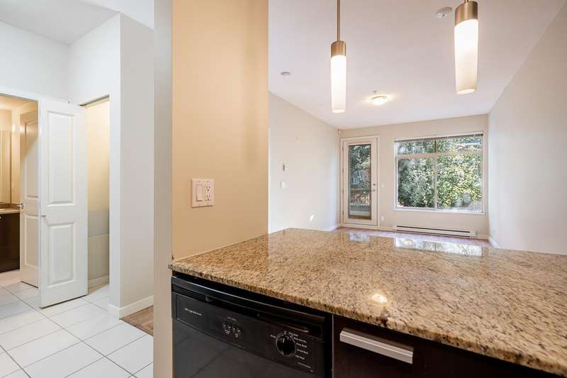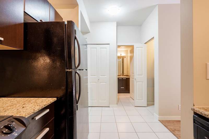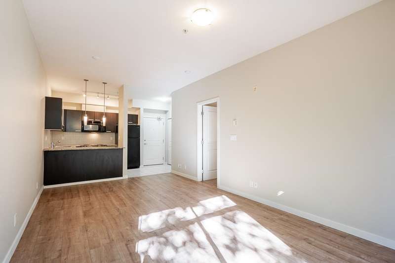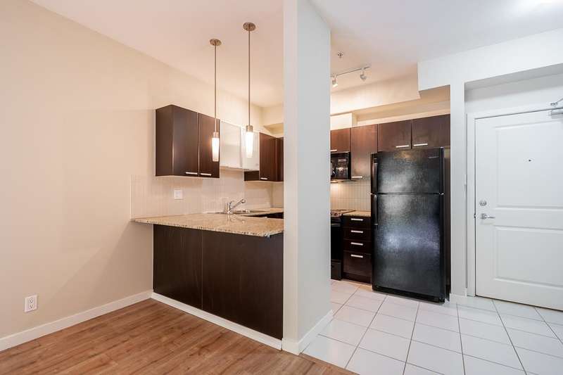 Located in the popular D'Cor community of Surrey City Centre. This Spacious One bedroom, one bathroom condominium is move in ready. Freshly updated with new wide plank laminate flooring in the living and dining areas and a new coat of paint. The Kitchen features dark wood grain cabinets, black appliances, granite counter top, tile backsplash and flooring. Situated on the second floor and on the quiet side of the building with dual-access balcony. 1 parking and 1 locker. Pet-friendly (One cat or one small dog permitted - maximum 20 kgs). The Building offers Secure Gated underground parking, onsite amenity and fitness rooms. Just a short stroll to SFU, KPU, Surrey Central Skytrain, and all the shops and restaurants of Central City Mall. OPEN HOUSE SATURDAY 2-4 PM NOVEMBER 29th.
