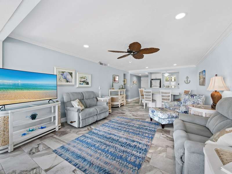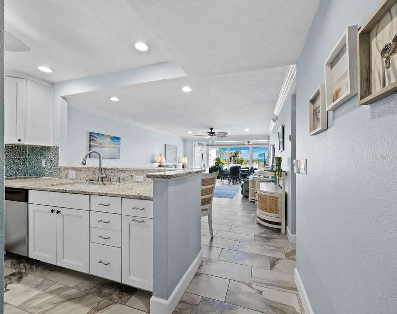 It's all about the spectacular FULL BAY VIEWS in this tranquil and beautifully renovated island retreat located in the beach to bay community of Sutton Place. This 2 bedroom, 2 bath residence is a true coastal oasis all done up in seaside hues. The gorgeous, remodeled kitchen is open to the living/dining area across an expanse of granite that includes a custom made dining table with lots of storage underneath and seating all around! Porcelain tile flooring makes the journey from one room to another a seamless and beautiful transition. These smart owners have converted the lanai into finished square footage and it is the perfect spot to enjoy a morning coffee or an evening beverage while watching the fish jump or the birds fly by. They also upgraded to IMPACT RESISTANT SLIDING DOORS AND WINDOWS throughout. The Primary bedroom has this same gorgeous view and a renovated ensuite bath. The once walk-in closet was converted to a small office space, (which could easily be changed back) but it’s current use is rather genius. When guests are not in town, the 2nd bedroom is another tranquil space to enjoy. Did I mention this is a 2 pets friendly community?! Sutton Place also offers its own PRIVATE BEACH CLUB and includes an abundance of amenities including 2 pools, a clubhouse, and an onsite marina with slips for a nominal fee of only $300 per year. The community recently completed a number of updates including repainting, reroofing and passing the milestone inspection and securing a 10 year certification. This owner has paid for all of those upgrades in full. The unit is being offered furnished with exceptions. Here you will find a remarkable quality of laid-back island life but if you're ready for more, enjoy the multitude of restaurants, shopping and the cultural mecca of downtown Sarasota, all within a short drive away.