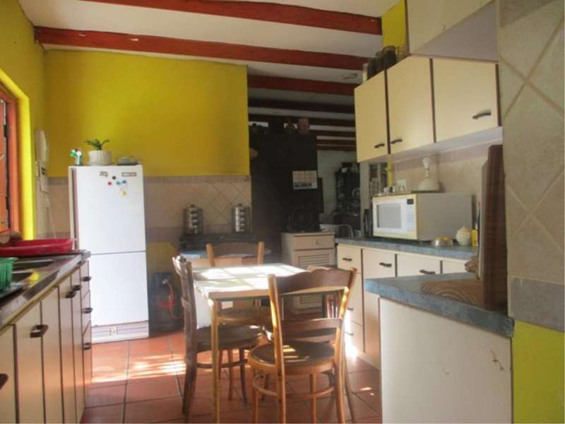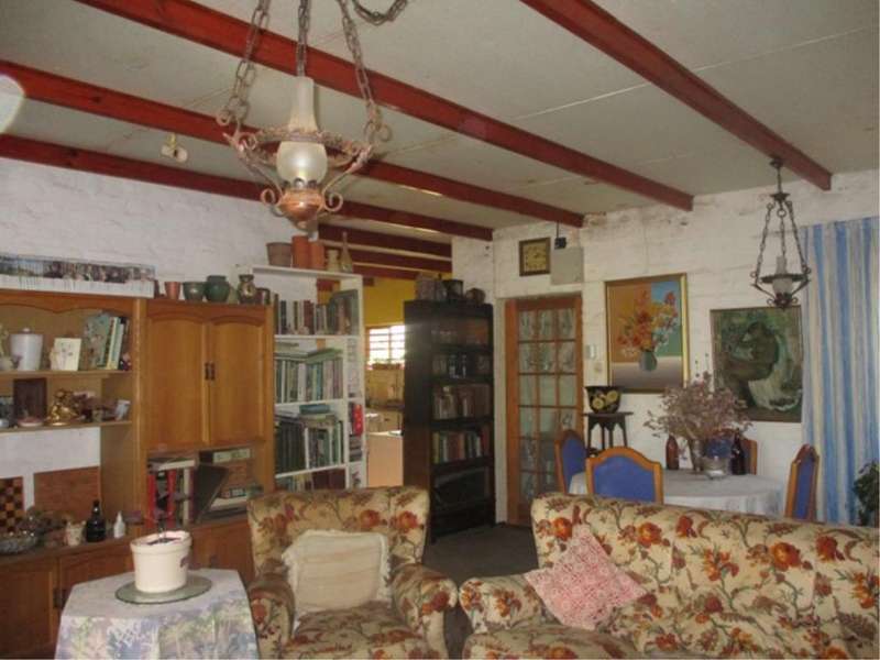 SOLE MANDATE - PRICE REDUCED BIRDS PARADISE & GARDEN LOVERS DREAM-COTTAGE No Transfer duty appicable! Amongst other small holdings in Hooikraal, you will find this 2- bedroom cottage on a corner stand, hidden behind lots of trees and bushy surroundings. It is fenced, burglar barred and secured with safety gates and beams. This gem has so much more to offer than its' quant, lush courtyard. The peaceful ambiance and adequate open spaces are a keen gardener's dream come true or boost any artist's creativity! This 'secret garden' / courtyard is enclosed with a gate and ensure privacy. Enough space to extend. The open plan lounge-dining-kitchen area is spacious.The kitchen is currently separated with a book shelf. This room flows into the courtyard. The study has a fixed desktop and bookshelves. This room can be adapted to a third bedroom. It exits from the lounge/dining room. All rooms are carpeted,though it needs to be replaced. The kitchen and passage have terracotta tiles. The 2 bedrooms have no built-in cupboards. The kitchen has ample cupboards and a washing outlet.No warm water geyser.The adjoining bathroom is equipped with an instant hot water faucet and hand shower, in the bath. An outdoor from the kitchen exits to the garden on the one side. The double garage is free-standing, and the doors work manually- No electricity, although there are fixed pipes for cables. Adjoining the garage (at the back) is an entrance to a large storeroom, with windows and an outdoor (not in use and sealed) There is also a trough. There is no water or electricity, though it has plumbing. It had an outdoor that exits onto a stoep (now sealed). This free-standing building can also be diverted into a flat. There is a septic tank with french drain,on the premises that does not need to be pumped. There is a 5000L-water tank in the garden. The garden has several fruit trees: olives, orange, pecan- and macadamia nut trees. A property this price, is a rare find. Take this challenge to proof your skills and add value to the property. You will afterwards be the proud owner, whether you want to flip it ... of stay happily ever after!!! Hurry or you will loose out on this opportunity!