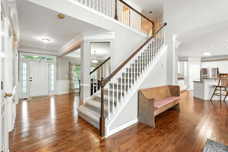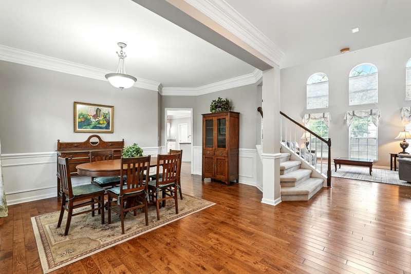 One of the largest floor plans in Traceside, this home offers 5 bedrooms plus a bonus room. The welcoming entry showcases a formal dining room on one side and a convenient main-level bedroom and full bathroom on the other.