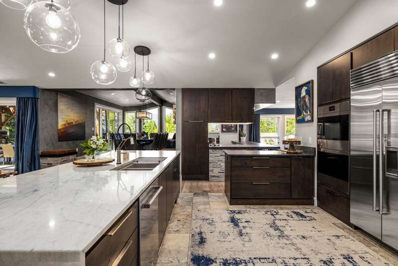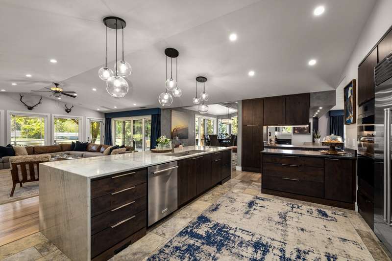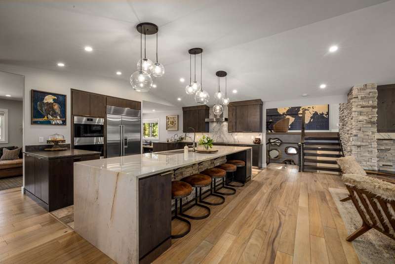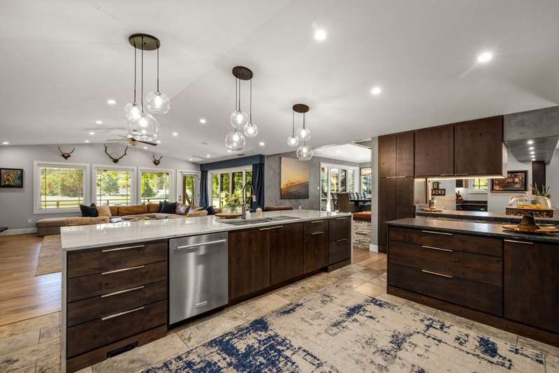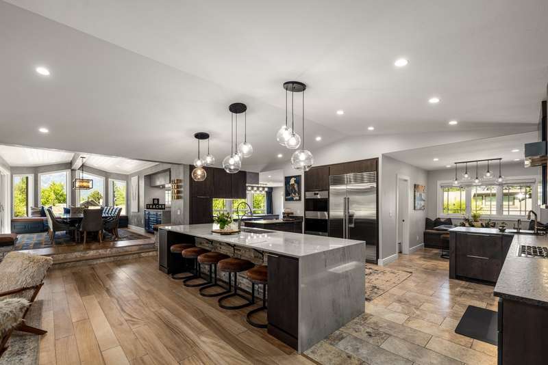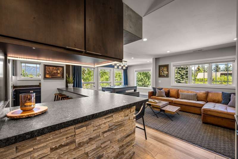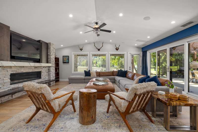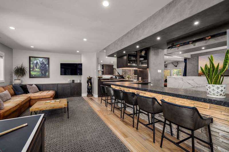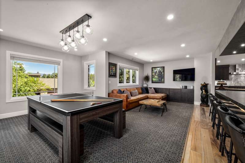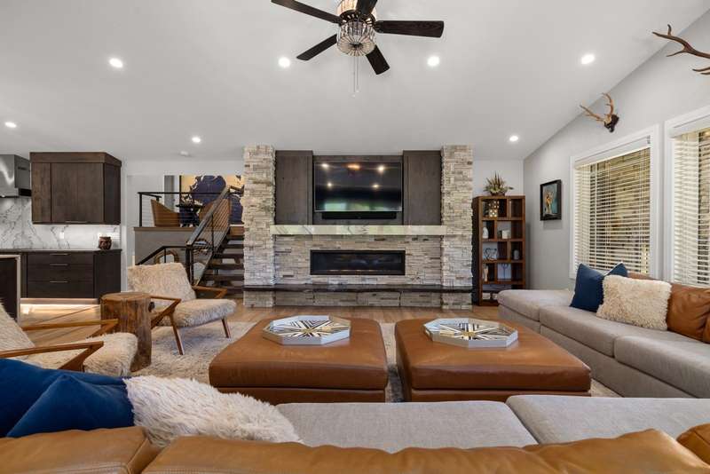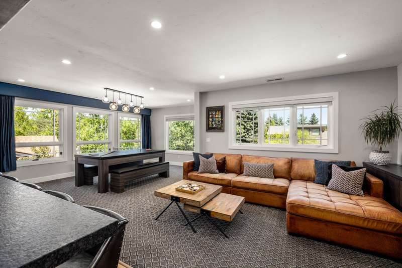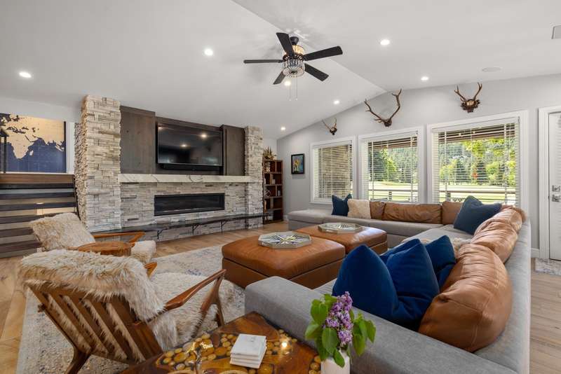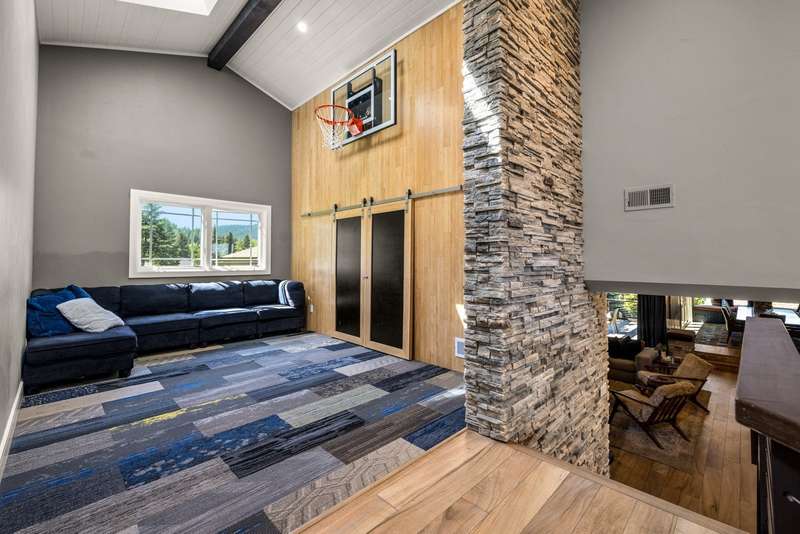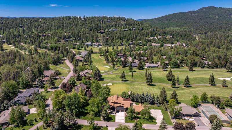 Grouse Mountain Grace! Perched on the 5th hole of Whitefish Lake Golf Course, in a gated community, with unobstructed year-round views of Big Mountain, this stunning residence captures sweeping views of Grouse Mountain and beyond. Fully renovated down to the studs between 2018-2019 with furnishings negotiable, the home features 5 bedrooms, multiple bonus spaces, and standout architectural elements-from the elegant 2-story stone entry to soaring vaulted ceilings and heated travertine flooring. The gourmet kitchen is outfitted with top-tier Wolf and Sub-Zero appliances, a massive 12.5' quartzite island, a full wet bar, and expansive open-concept living areas perfect for entertaining. The private primary suite is a retreat of its own with dual walk-in closets, a steam shower, a fireplace, and direct access to a secluded patio with a hot tub. Additional amenities include an indoor treehouse-style bonus room, teen lounge, craft room, full gym with sauna, and dual garages. One garage is heated with epoxy floors, while the other features oversized doors, a workbench, and retractable loft storage. The adjacent driveway includes a permanent basketball hoop with a painted half-court, along with a painted pickleball court for added recreation. Located just minutes from downtown Whitefish, Whitefish Lake, and Whitefish Mountain Resort, this home offers an extraordinary combination of luxury living, premier location, and year-round recreation. Please also see the features list in the documents tab for a complete list of amenities.