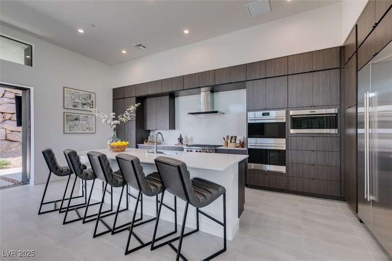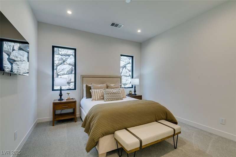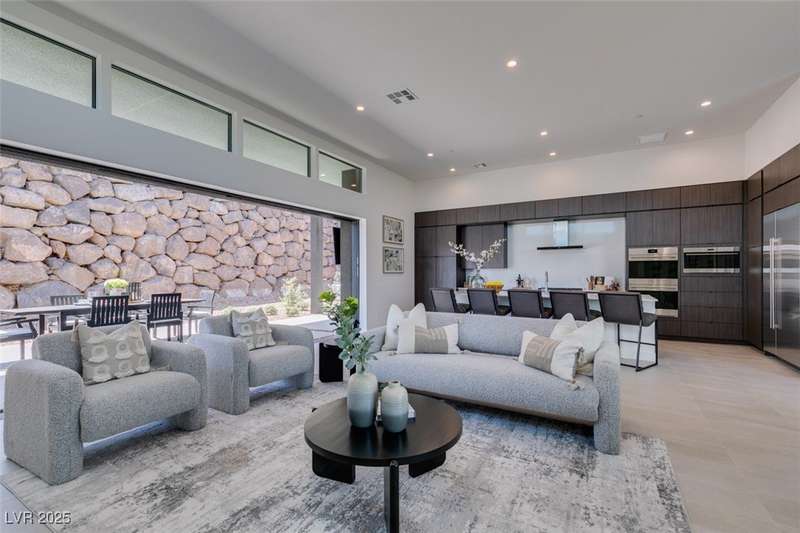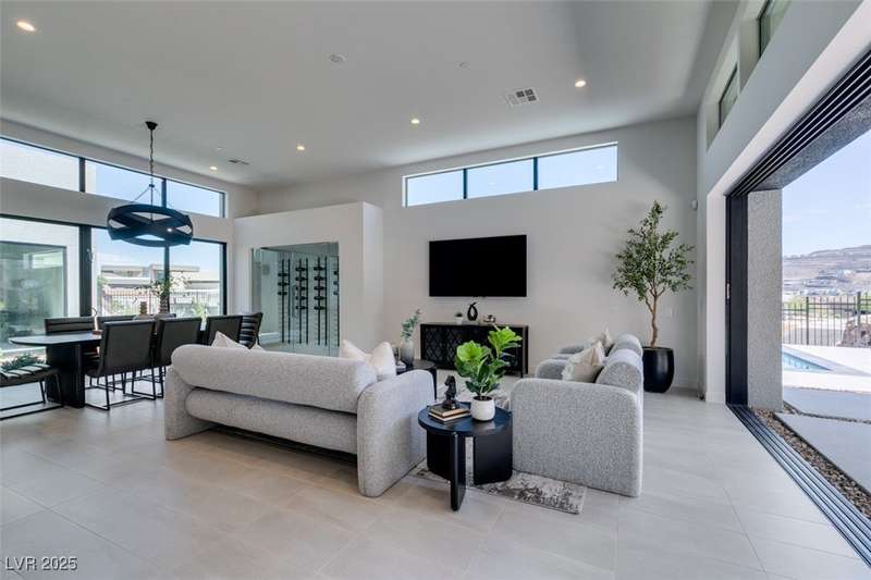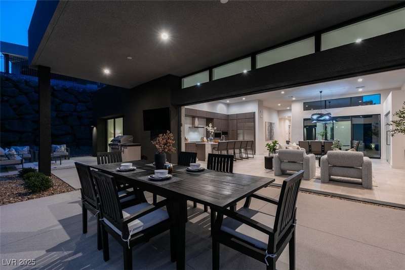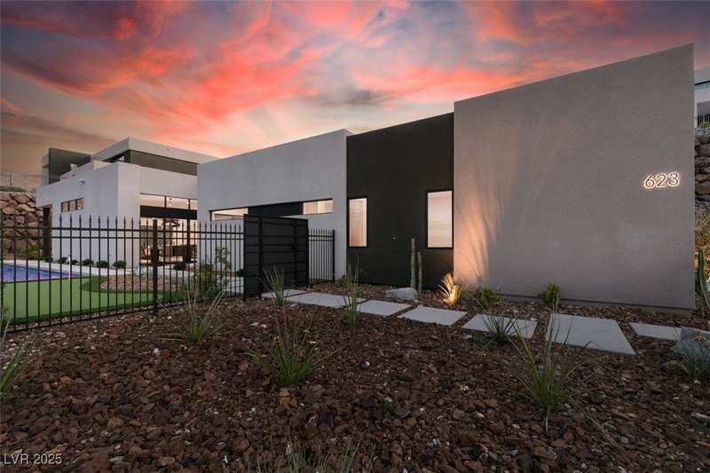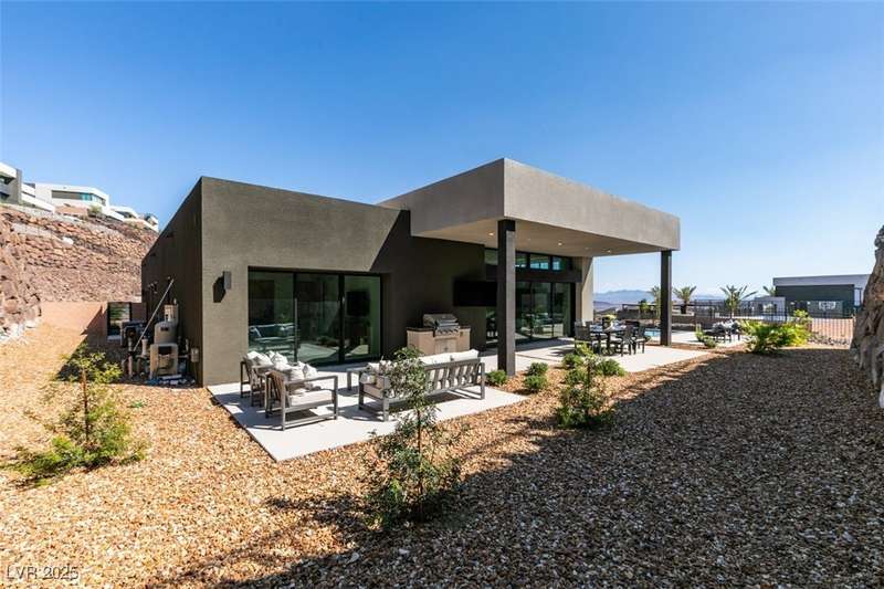 Rare opportunity to own a 2024, never lived in, Blue Heron masterpiece in one of Las Vegas’ most exclusive communities, MacDonald Highlands Country Club. Casa Solara is a modern desert sanctuary where striking architecture meets resort living. This single-story ASPECT model, boasting a sparkling pool and spa, is tucked within a cul-de-sac in the private enclave of Dragon Rock and showcases 4 bedrooms, including 3 en-suites. Designed for seamless indoor-outdoor living, oversized stacking sliders open to a sleek pool, spa, and sun-drenched lounge spaces. Dramatic Canyon, City and Mountain Views, wine wall and expansive great room set the stage for elevated entertaining. Within the guard-gated MacDonald Highlands CC, enjoy world-class golf, tennis, pickleball, fitness, dining, and unparalleled security. Casa Solara isn’t just a home, it’s a lifestyle of luxury, sophistication, serenity. State tax advantage in Nevada, a state with no individual, corporate, estate, or inheritance taxes.