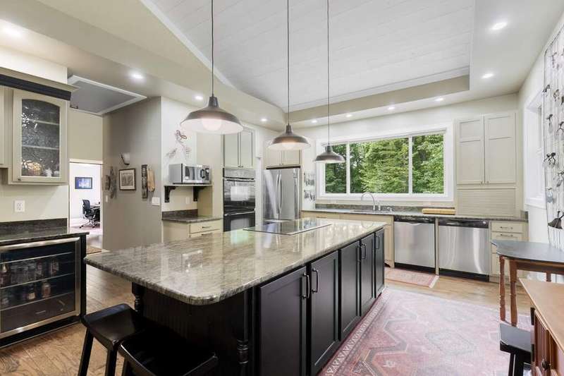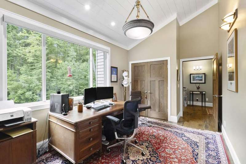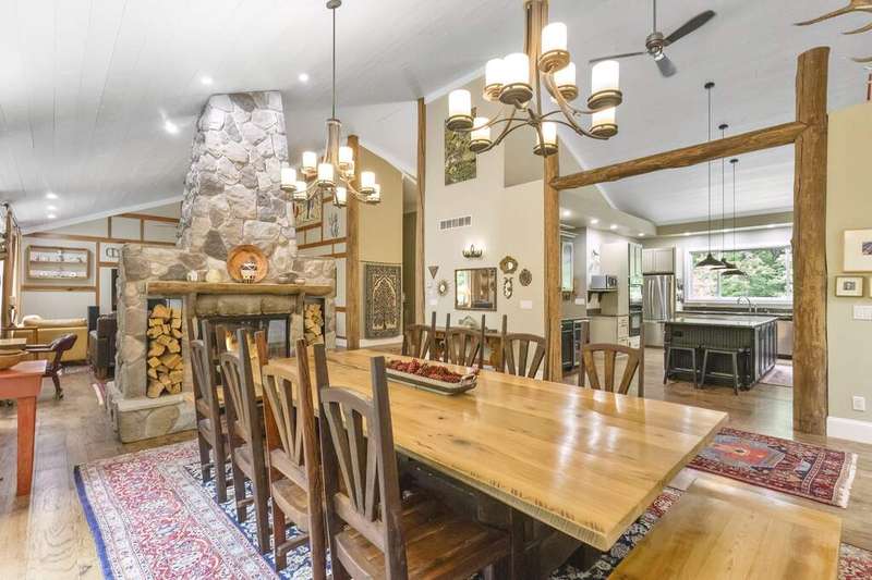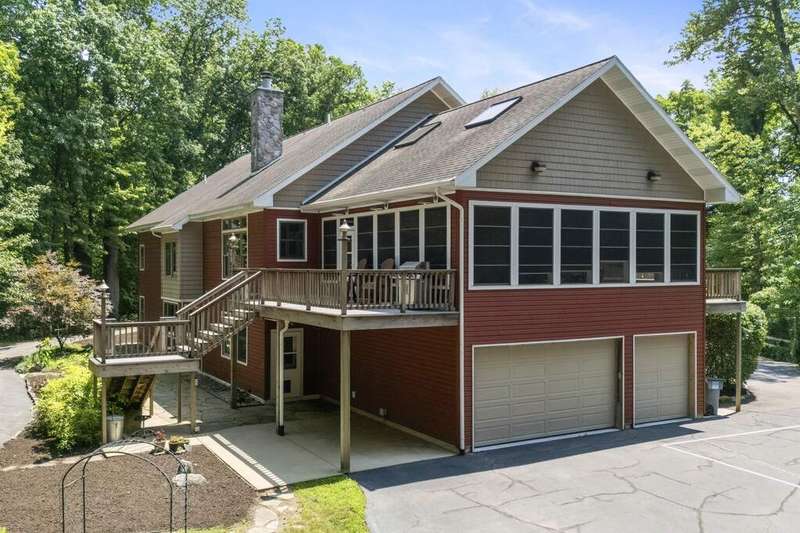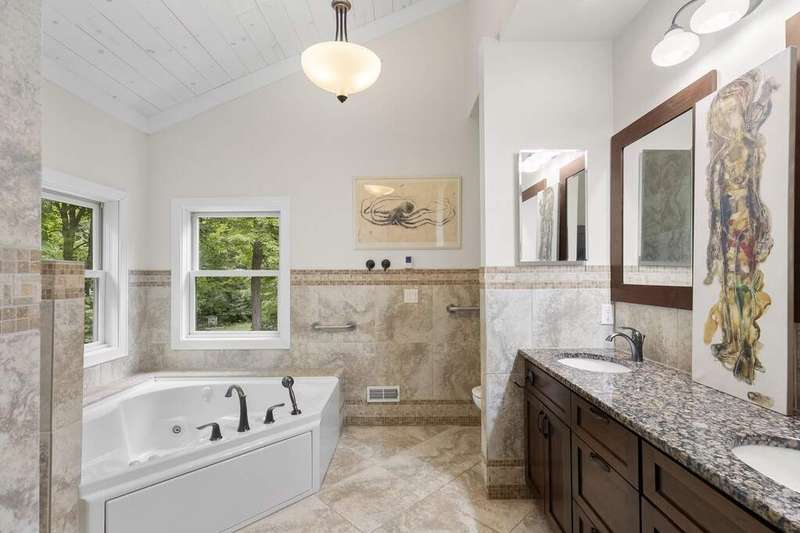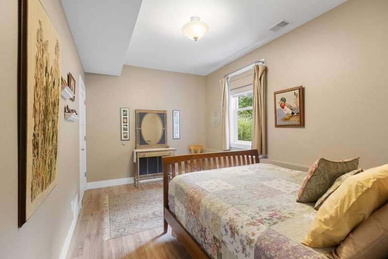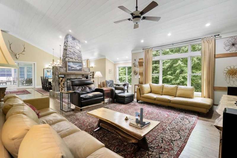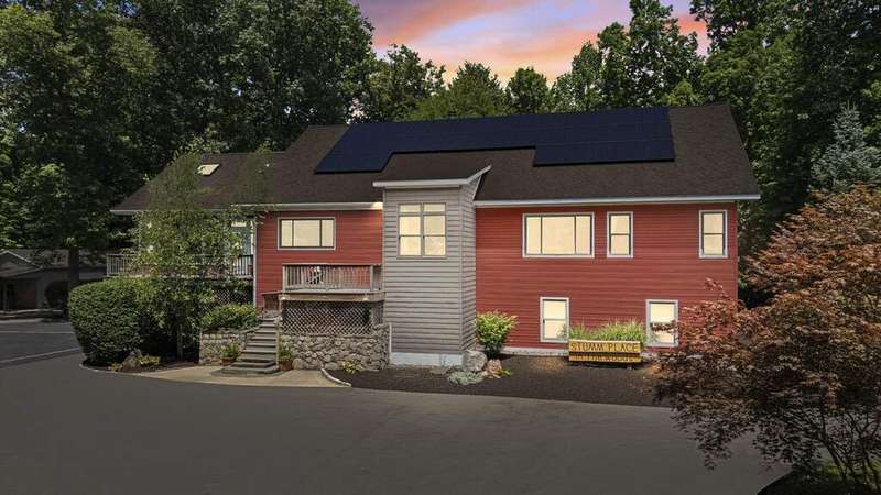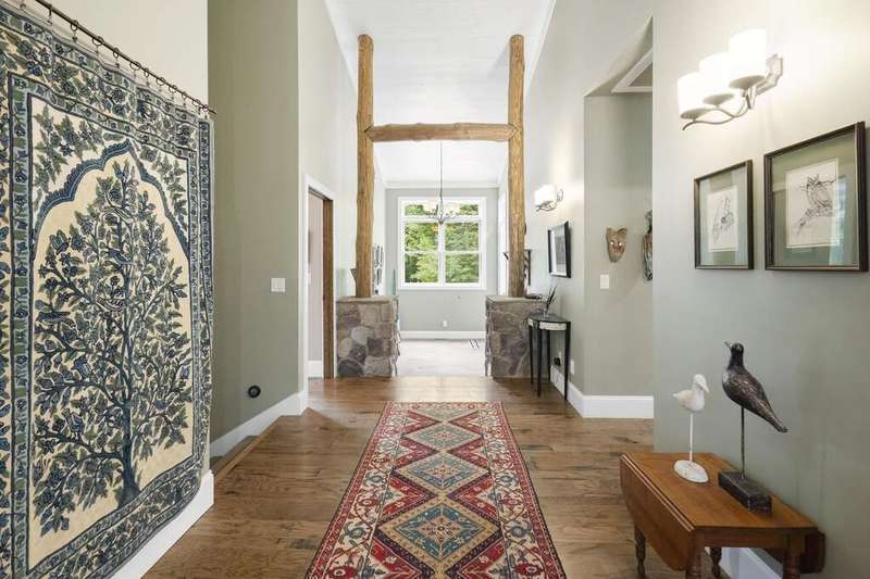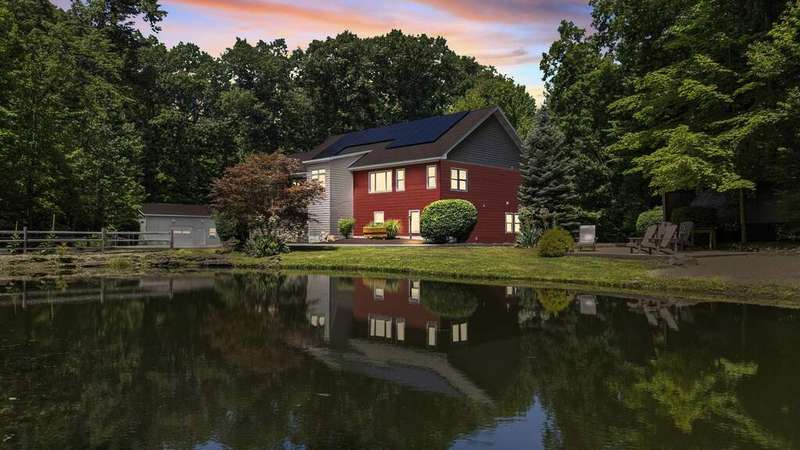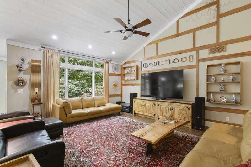 A private estate unlike anything else in Harbor Country. This rare blend of timeless craftsmanship & serene natural beauty, is nestled on 11 wooded acres with a tranquil pond & stream meandering through the property. This one-owner custom-built retreat offers over 5,000 sq ft of luxury living, meticulously designed for comfort, elegance, & privacy. Crafted with high-end features including cypress beams repurposed from the historic Sears warehouse, a grand double-sided stone fireplace, & radiant floor heating in the main level. Explore 2 miles of private trails, cross 5 handcrafted bridges, & enjoy the scenic charm of a 120' x 40' pond surrounded by Paw Paw trees. A truly unique legacy property - perfect for a private residence, STR, weekend escape, or multi-generational compound.