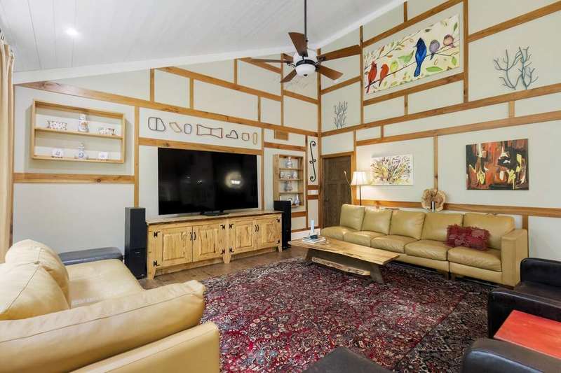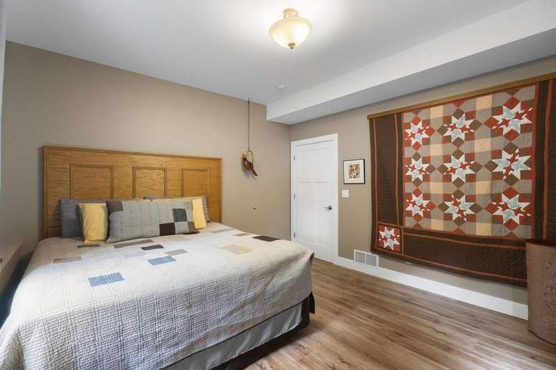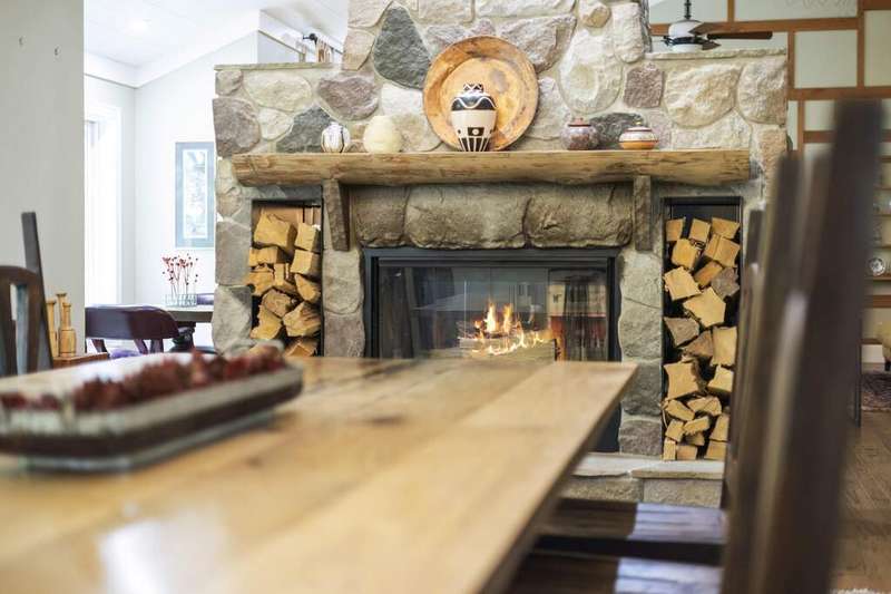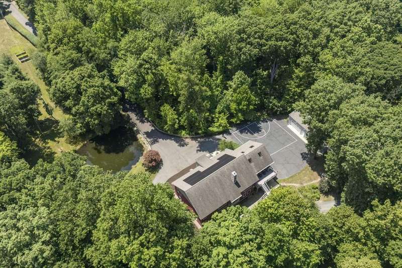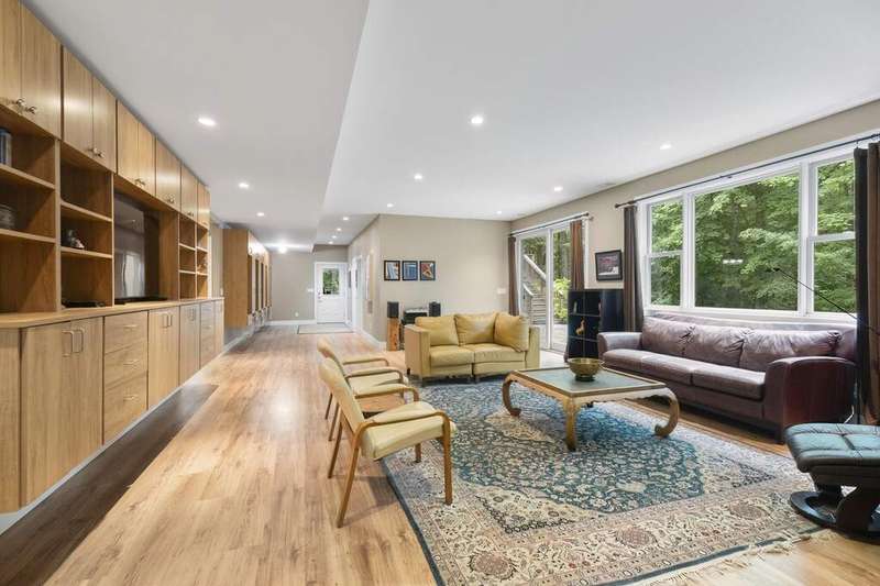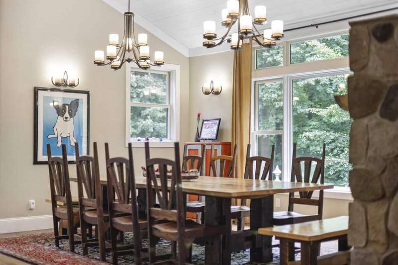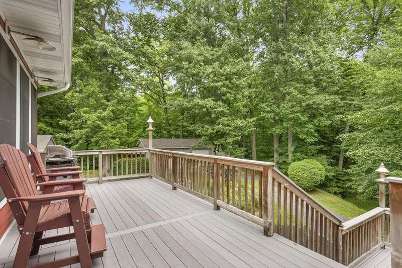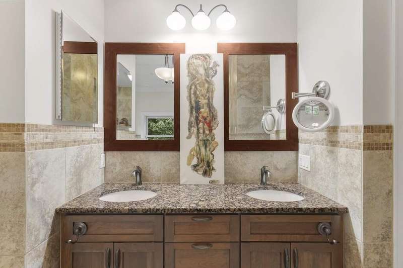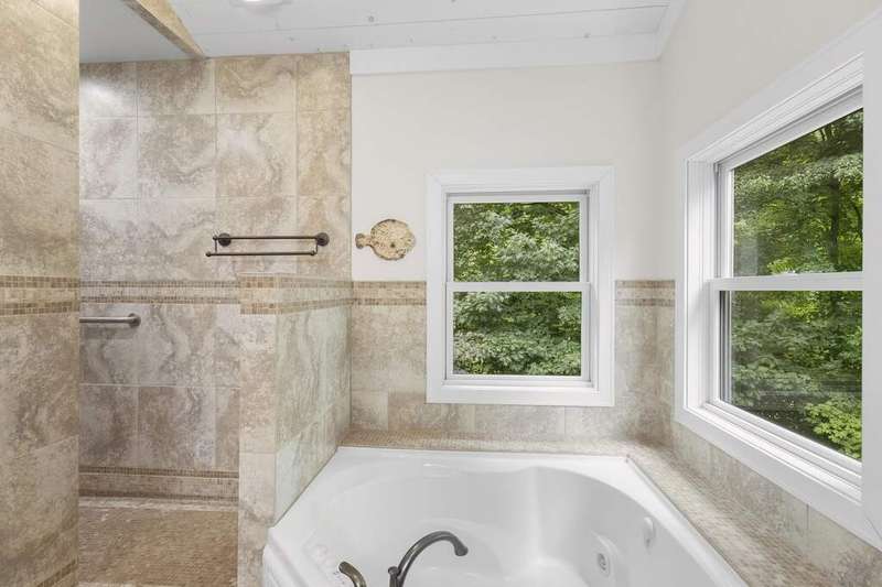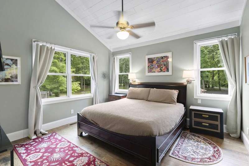 A private estate unlike anything else in Harbor Country. This rare blend of timeless craftsmanship & serene natural beauty, is nestled on 11 wooded acres with a tranquil pond & stream meandering through the property. This one-owner custom-built retreat offers over 5,000 sq ft of luxury living, meticulously designed for comfort, elegance, & privacy. Crafted with high-end features including cypress beams repurposed from the historic Sears warehouse, a grand double-sided stone fireplace, & radiant floor heating in the main level. Explore 2 miles of private trails, cross 5 handcrafted bridges, & enjoy the scenic charm of a 120' x 40' pond surrounded by Paw Paw trees. A truly unique legacy property - perfect for a private residence, STR, weekend escape, or multi-generational compound.