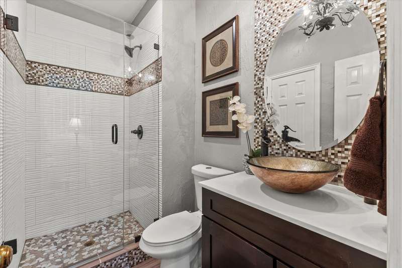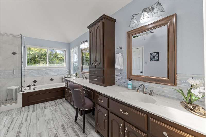PRICE IMPROVEMENT ON THIS BEAUTY!This 5 bedroom North Hills Beauty has unique features and a floor plan not found in other homes. A Loft space and Bedroom that feels as if you are escaping to your own hideaway.. Downstairs there are two living areas a formal dining area and a 5th Bedroom that could also be used as a study. Hardwood Floors are in the entire downstairs living spaces. Gourmet Kitchen with upgraded appliances with granite countertops and many cabinets. There is a breakfast bar and breakfast area. The backyard has a covered patio and beautiful landscaping with a rock fountain, beautiful trees and flowers. The upstairs has a balcony that views the awesome sunsets over Lake Ray Hubbard. This home has received loving care. Flooring upstairs and downstairs is new. The grounds are entirely sprinkled. Front yard has drought tolerant zoysia grass. Roof replaced in 2018 and HVAC in 2012 replaced. Convenient to schools and close to the Rockwall historic downtown square where you can experience excellent dining and special events such as the Farmer's Market and Founder's Day. There is a covered patio and large back yard with white cedar fencing. Located on a beautiful lot that is completely sprinklered in Northshore subdivision. The back yard is Pool Size and close to Lake Ray Hubbard which offers, boating, fishing and Concerts on the Lake in the Harbor. This home offers a Lifestyle that you will enjoy every day. The comfort of a cozy home that is located close to entertainment and shopping. The new HEB is coming soon. Convenient to I-30 and Hwy 66 for easy commute to Dallas. Certainly a Home you will be proud to own! Lot size is 83.34 X 120 FT.