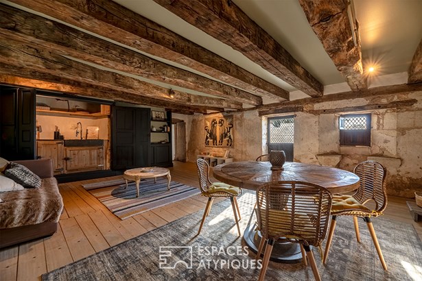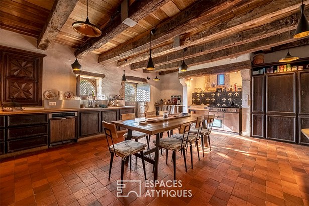 The layout of this fortified manor ('maison forte') allows it to be rented as a single guesthouse ('gite') or as two separate units, thanks to its two equipped kitchens, offering complete flexibility for hosting or seasonal lettings.