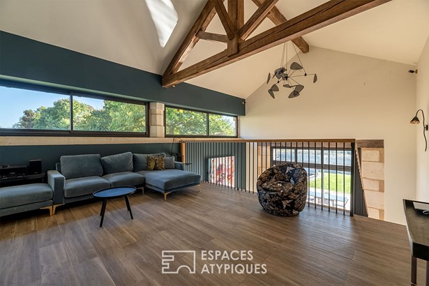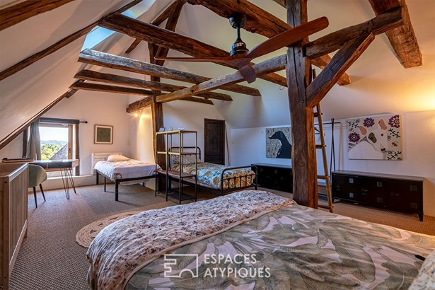 Remarkable architectural details, such as mullioned windows, exposed oak beams, and rammed earth ('pise') floors, immerse occupants in a complete experience, combining historical character with all the modern comforts needed to fully enjoy special moments with family.