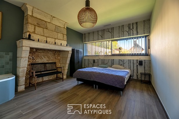 Additionally, a 128 m2 converted wine press ('chai') blends authenticity and modernity with high-quality materials, highlighted by its wood-burning stove and views over the medieval garden.