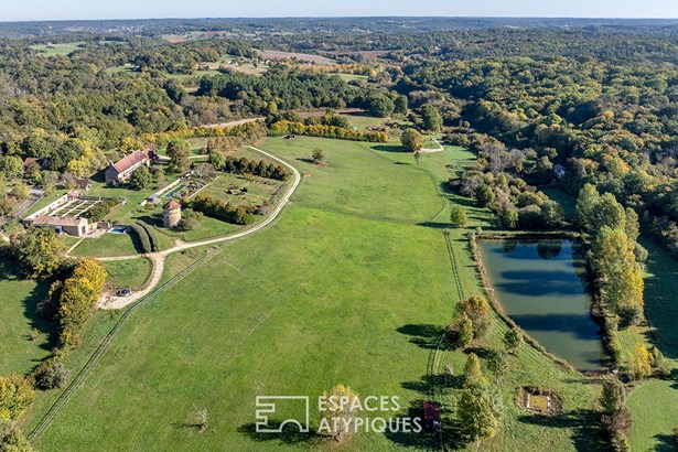 A pond and a small farm for animals complete this bucolic setting, where a connection with nature has always been at the heart of the project, welcoming guests and prestigious events in a warm atmosphere.