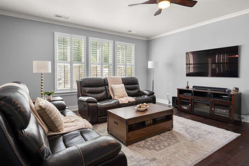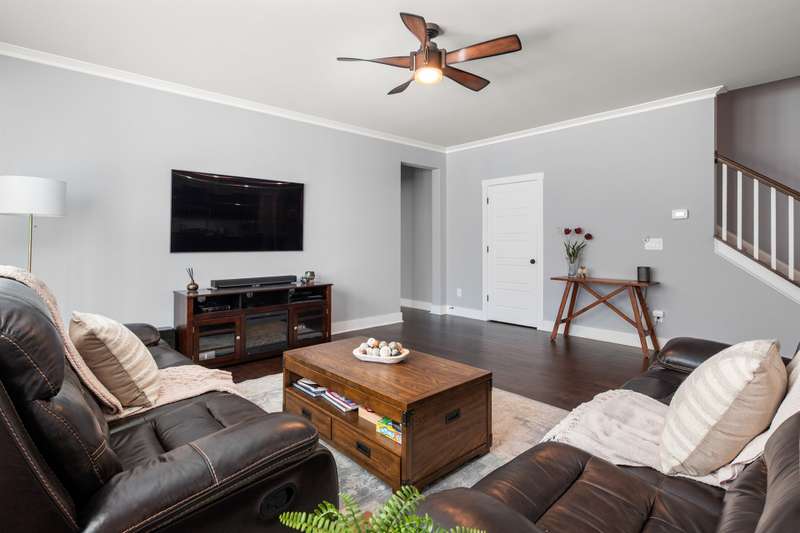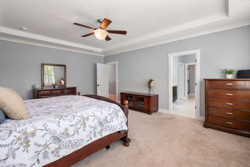 Located in the highly desired Paddlers Cove, this 5 Bedroom / 4.5 Bath home is designed with today's lifestyle in mind. A sought-after home office and a main-floor guest suite provide the perfect balance of work, comfort, and flexibility ? ideal for remote work, visiting guests, or multigenerational living. The chef's kitchen is a standout, featuring stainless steel appliances, a gas range, walk-in pantry, and abundant counter space ? perfect for everyday meals or entertaining. The main level also offers gorgeous hardwoods, a formal dining room, a powder room, and a bright breakfast area. Upstairs, the elegant primary suite includes a spacious bedroom, dual walk-in closets, a large tiled shower, and a soaking tub. Three additional bedrooms ? each with walk-in closets ? plus a versatile loft provides plenty of room for family or guests. Outdoor living is equally inviting. Relax on the extended screened-in patio, complete with a stone fireplace, and enjoy the privacy of a fenced yard that backs to a wooded natural area. Additional highlights include a freshly painted exterior and an extended garage with custom storage rack for ample storage. Living in Paddlers Cove means resort-style amenities at your doorstep: two community pools, parks, walking trails, and close access to Lake Wylie. Don't miss this beautiful home!