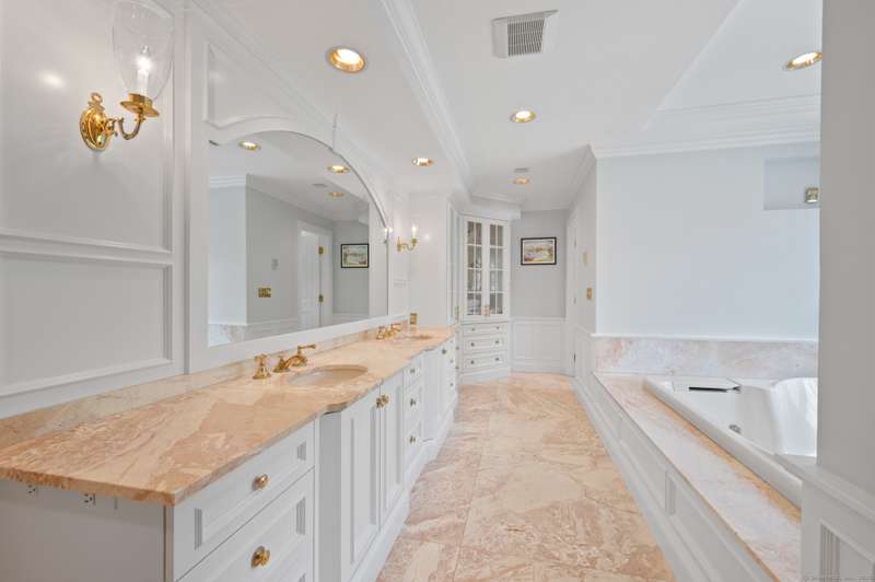 Come see this remarkably private property a stone's throw from the center of Litchfield. This stately home was built in 1992 and boasts over 10,000 s/f of finished space. The grounds are professionally landscaped and have a beautiful patio, pool and greenhouse. There are 8 bedrooms and 13 bathrooms along with a powder room . The sunny , modern, large eat-in kitchen open onto a patio, which then leads to the saltwater pool. A main floor guest bedroom suite with its own bathroom is an added convenience. There are lots of space for grand entertaining in the formal dining room, living room and great room. Plenty of cabinetry and shelves to display your treasures. You can warm yourself by the fireplaces. The master bedroom suite on the upper level has it all, walking closet, fireplace , sunroom and a large bathroom with steam shower and jet tub. 3 additional bedrooms round up the second floor, all with en-suite bathrooms. A separate laundry room is conveniently located on the bedroom lev