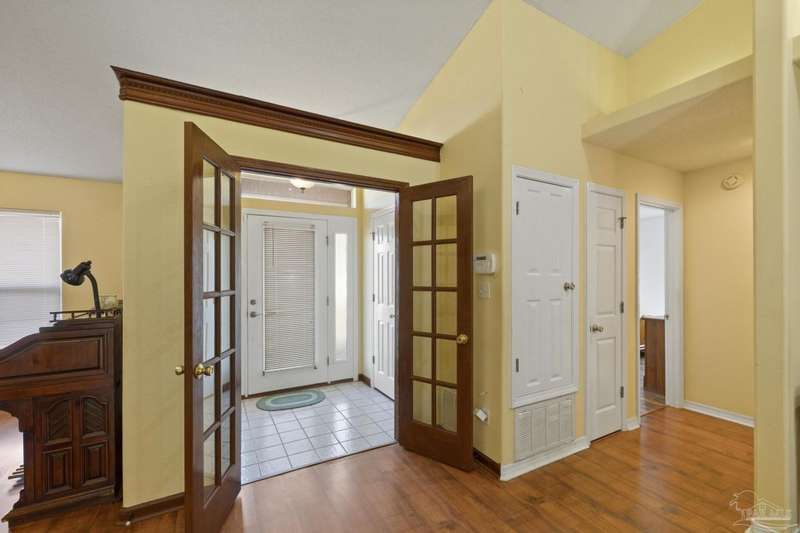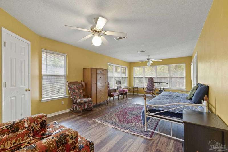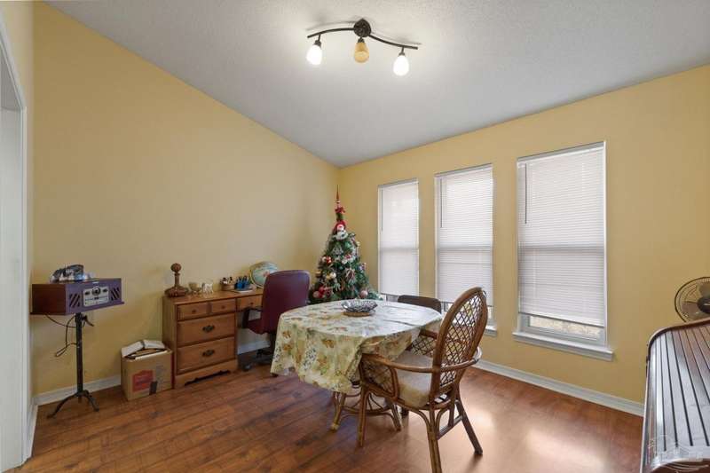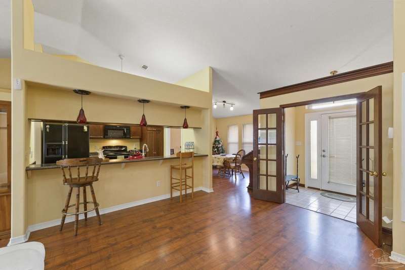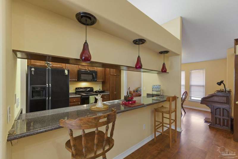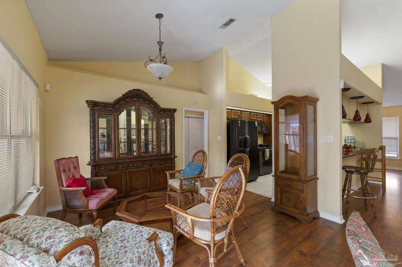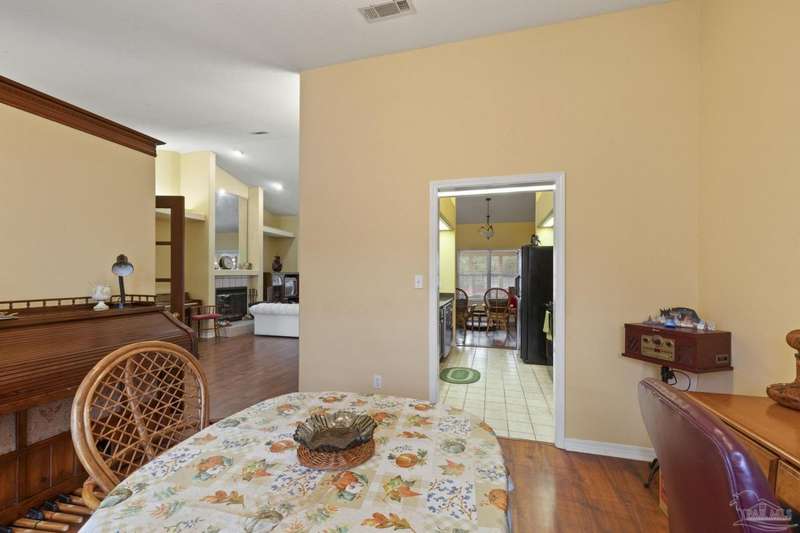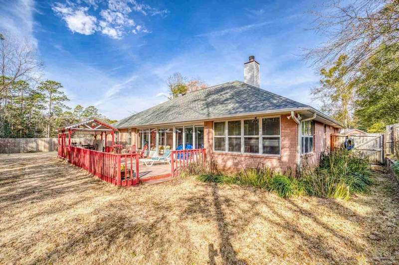 This 3 bedroom 2 bathroom home has 2071 square feet of living space and sits on .3 acres. High ceilings and dark wood-look floors set the stage for elegance and a timeless space that can be designed to your imagination. The kitchen is open to the main living area through the granite breakfast bar, and offers easy accessibility to both the eat-dining area and the formal dining room, making the space perfect for hosting and families alike. The living room is centered by a cozy fireplace and built-ins, and is also bathed in natural light that comes through the large glass sliding doors that lead out into the sunroom on the rear of the home. The master bedroom features stylish trey ceilings, is large enough for a sitting area and has an ensuite bathroom. The ensuite bathroom features both a soaking tub and standing shower, plus an abundant amount of cabinet space for storage. One of the remaining two bedrooms has easy access to the sunroom on the rear of the home and a huge layout with room for a sitting area. Take a tour of this family home today!