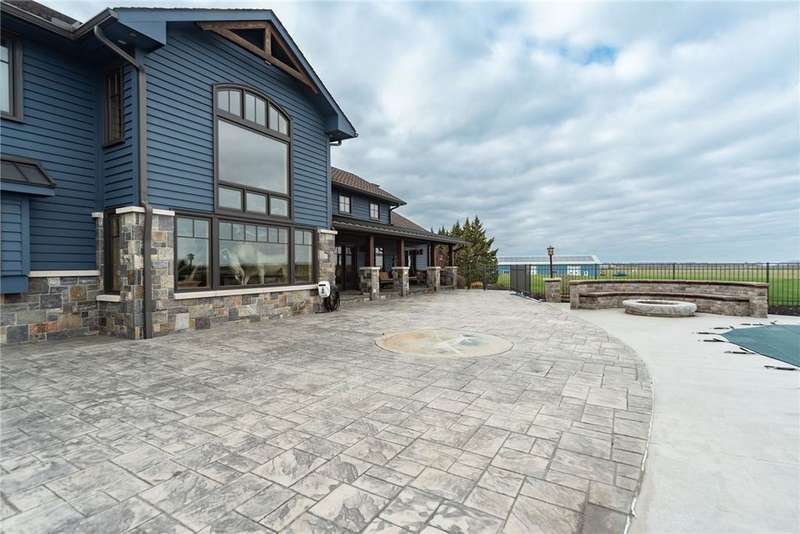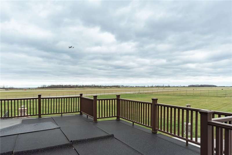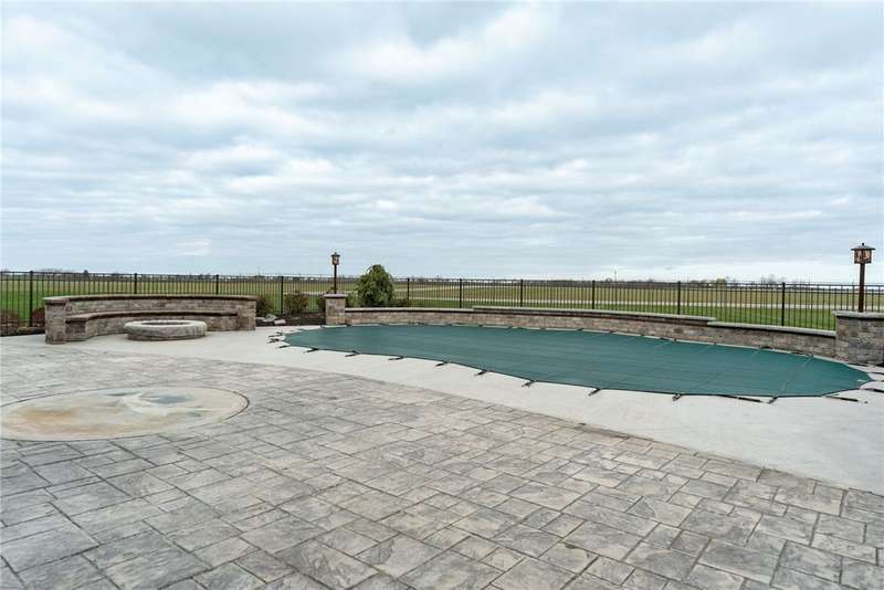 Custom built home overlooking the Genesee County Airport has 3/4 bedrooms, four full bathrooms and two half bathrooms. The gourmet kitchen has custom burled chestnut and walnut cabinets, hickory floors and black walnut on the island. Off the kitchen is a walk-in pantry and entrance to the four-car garage with heated floors. The driveway is also heated for 5' from the house. (All floors in the house are heated.) The kitchen is open to the dining room and living room with a gas fireplace and French doors leading to the patio. There is a room for entertaining guests that has a bar, gas fireplace, black walnut floors and doors leading to the patio and in ground pool. The primary suite is on the first floor with a private bathroom featuring double vanities, a walk-in tiled shower and a jetted tub. The laundry room is also on the first floor. There are 2/3 bedrooms on the second floor and two full bathrooms. There is a loft overlooking the living room and a second-floor balcony to enjoy watching the planes fly in and out. There is an outdoor kitchen on the patio with a natural gas grill and wood pizza oven. There is an inground pool and fire pit in the back yard.