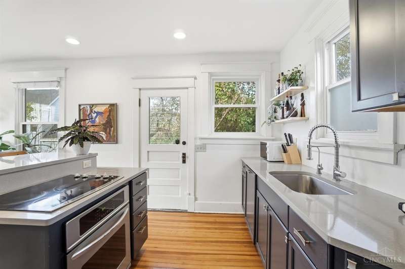 Totally charming Northside bungalow! 4575 with its fenced yard and inviting front porch has been property maintained with original oak floors while being updated with replacement windows, an open kitchen featuring quartz counters, island cooktop and KraftMaid soft close wood cabinets. Additionally, you'll find easy access to the side yard, driveway and garage-its move in ready and located in a quiet friendly neighborhood yet just one block to the Comet!!