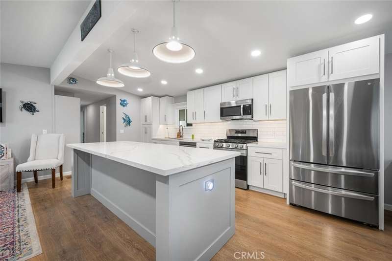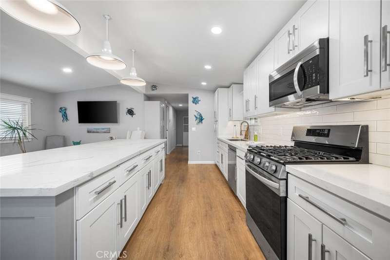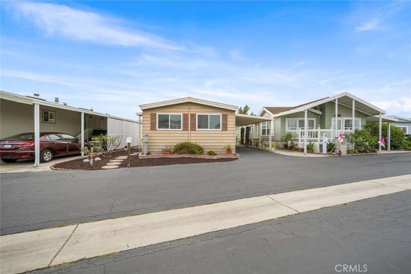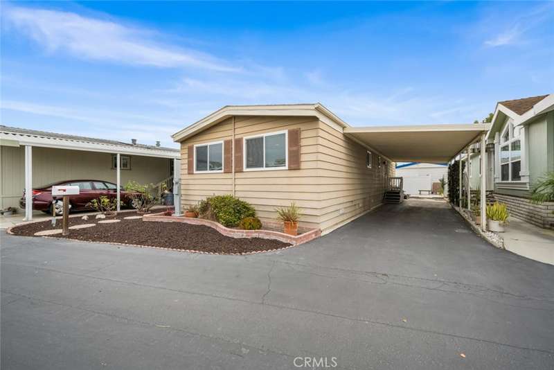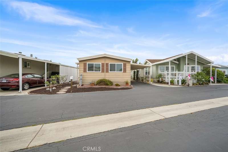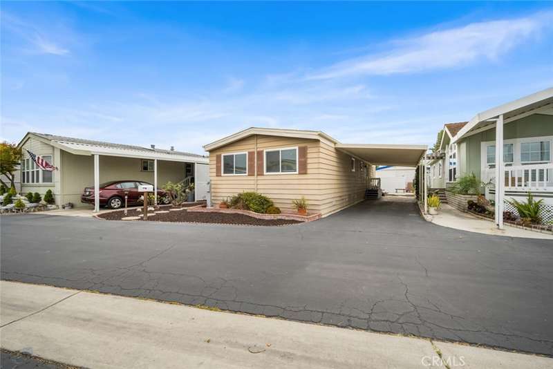 This 55+ community home really delivers, situated in the highly desirable Rancho del Rey Mobile Home Estates. Convenient to sandy beaches, wetland hiking trails, shopping, restaurants, freeways and much more. Community features include gated entry with fulltime security guard, two clubhouses each with heated pools, Jacuzzi spas, sauna, banquet facilities, billiard tables, outside barbeque areas. This home's kitchen is its crown jewel! Custom kitchen island with quartz tops. Recessed lighting. Double pained windows. 20 Piers under the home to handle increased weight. Great location facing west for ocean breeze and sunsets. Guest parking very close and walk to clubhouse and pool!