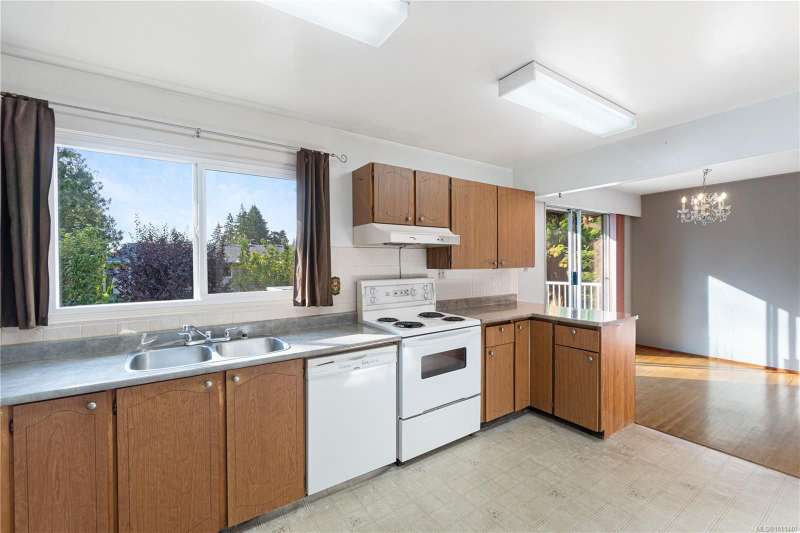 Welcome to 3835 Departure Bay Road! This charming 1967 two-storey home offers 1,977 sq ft with a bright, inviting layout. Upstairs features 3 bedrooms & 1 bath, providing plenty of room for family living. The main level boasts a spacious living room with cozy wood-burning fireplace & direct access to a large deck overlooking the private yard. Updates include *Roof (2010), *HWT (2023), *York Furnace (2012), *Windows Up (2011) & Bsmt (2009). *Fridge, Washer & Dryer included (DW & Oven not working). The unfinished basement offers flexibility for rec room, office, or suite potential. Sitting on a 0.20-acre lot, this property offers a carport & ample parking, incl. RV space. Plenty of outdoor space for gardening, entertaining, or enjoying the coastal lifestyle. Zoned R5, this property also offers excellent development potential. Close to schools, shopping, parks & the beach. A great opportunity to put your personal touch on a solid home — with room to grow — in a sought-after neighbourhood!