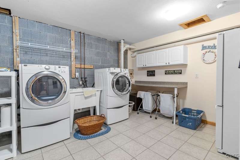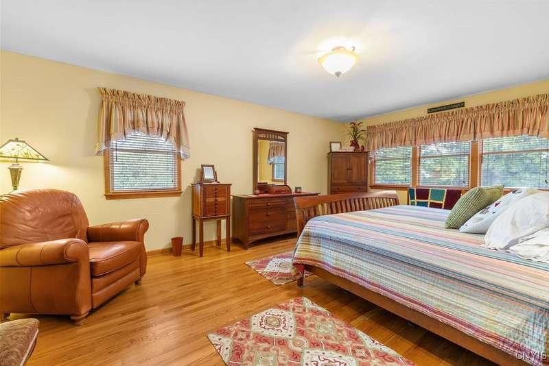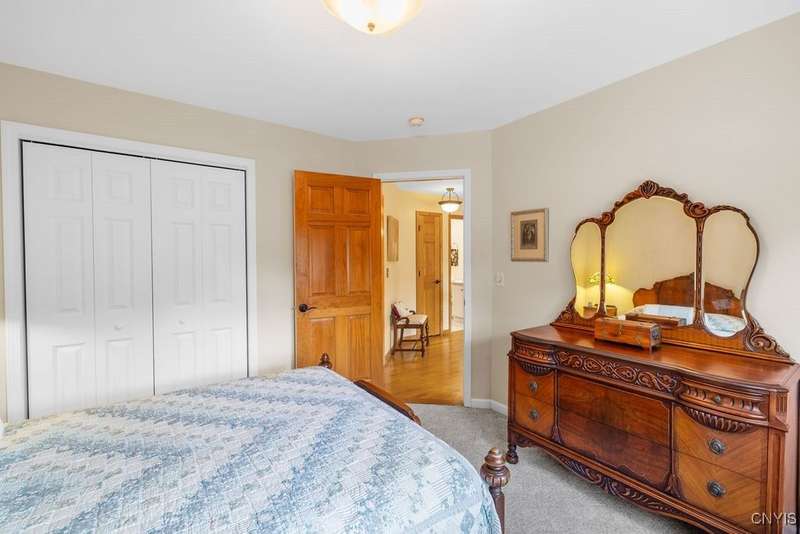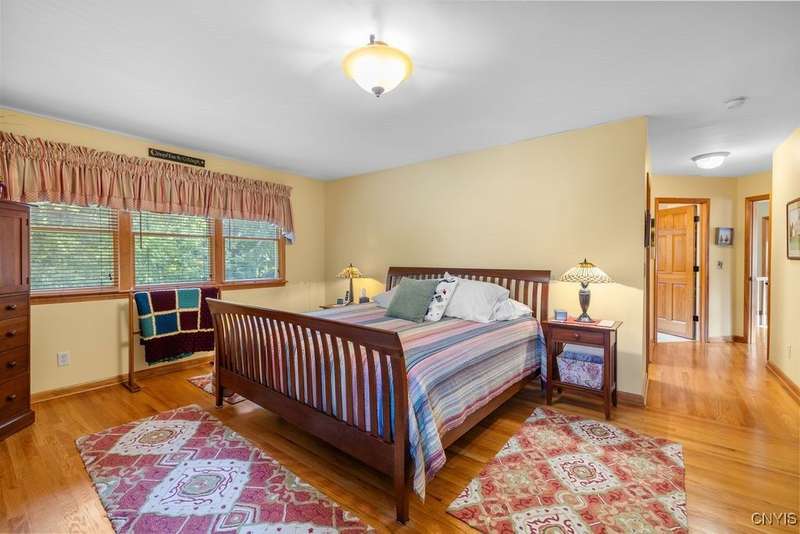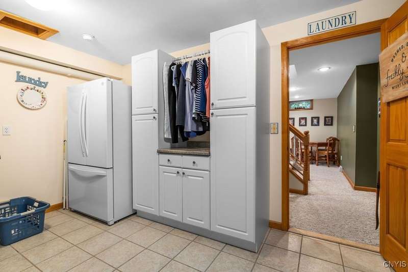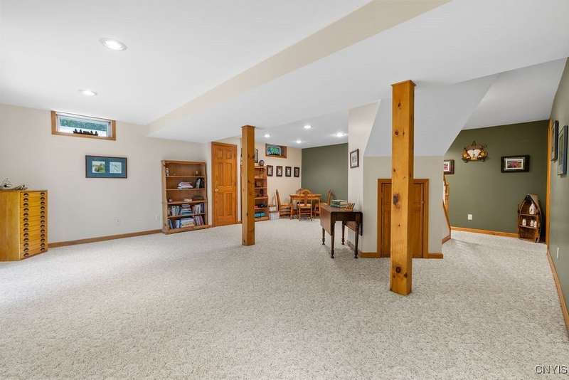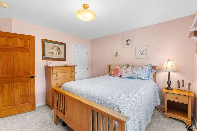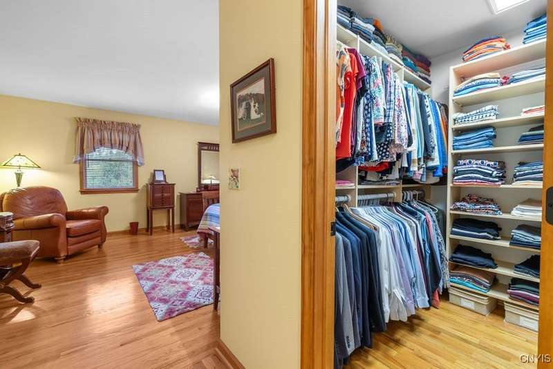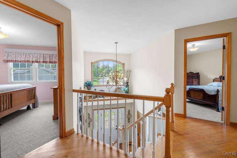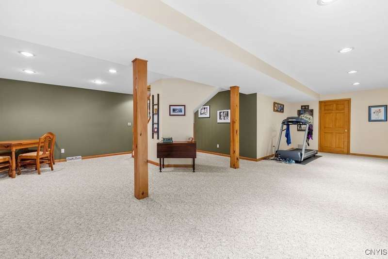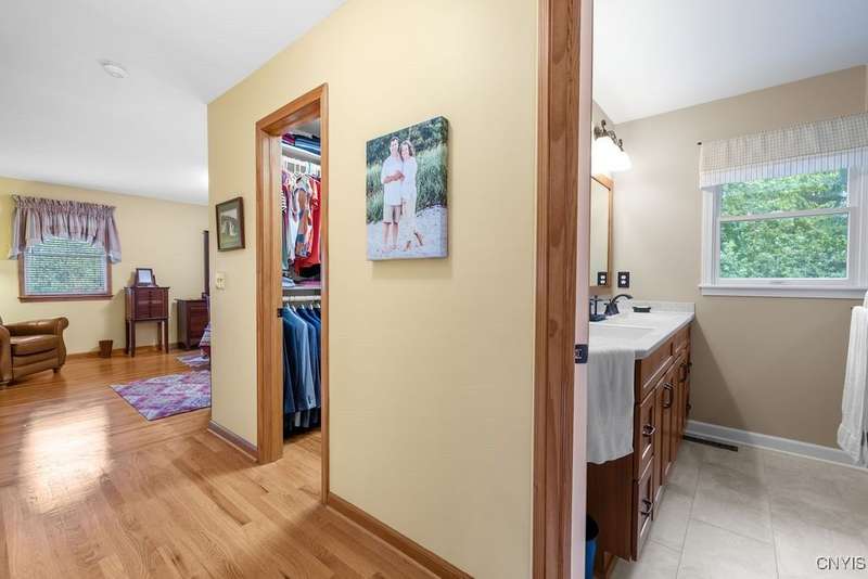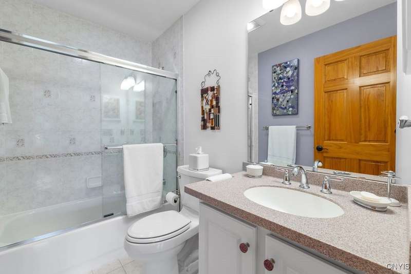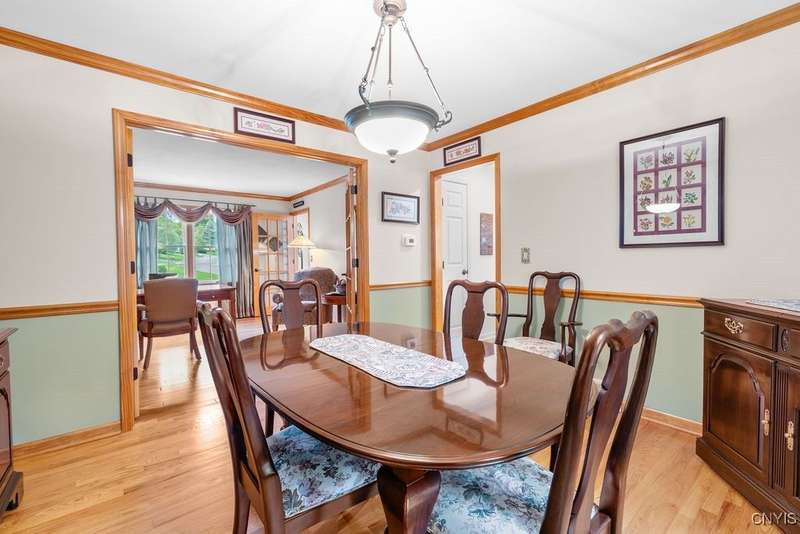 Do you want the feel of a neighborhood while still enjoying privacy? Welcome to 135 Peridot Drive, a beautifully updated 4 bed, 2.5 bath colonial located within the West Genesee School District and spans over 3,000 sqft. Tucked away at the end of the street and surrounded by mature trees, this home combines convenience with a private, peaceful setting. Step inside to a two-story foyer with a grand staircase and gleaming natural wood floors. The remodeled kitchen is a chef's dream, featuring expansive counter space, upgraded cabinetry with toe-kick and pull-out pantry drawers, and newer appliances. A sliding glass door leads to an oversized maintenance free composite deck overlooking the private backyard. The spacious family room offers a gas fireplace and a wall of windows that fill the space with natural light. A formal dining room, private office with French doors, a convenient half bath, and an attached oversized two car garage complete the main level. On the second level, the primary suite is a retreat with a newly remodeled bath (2020) showcasing a walk-in tiled shower with glass door, double vanity, heated floors, and custom corner cabinetry. The suite also includes a large walk-in closet. Three additional bedrooms, all generous in size with ample closet space, share a full bath with a tub. The finished walkout basement is perfect for entertaining, offering additional living space plus room for storage, a workshop, and laundry. Additional shed under the deck for more storage. Notable updates include a new roof (2021), remodeled kitchen, and numerous interior upgrades. This home blends everyday comfort with elegant details ? all in a sought-after location. Don't miss this one! Highest and best offers Tuesday 9/23 @9pm.