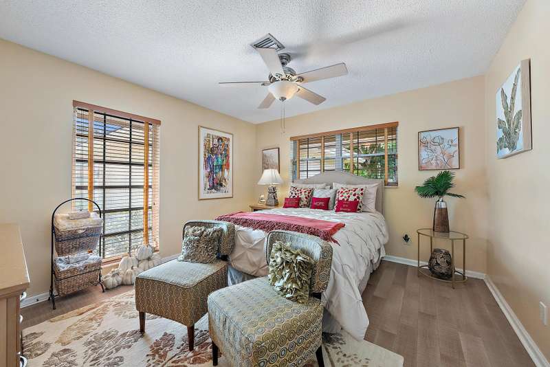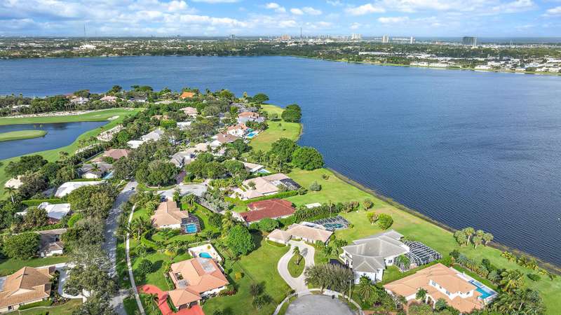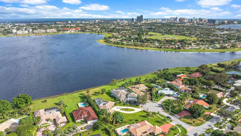Largest Lot of Land Real Estate on a quiet cul de sac overlooking Lake Mangonia. The lake is protected as a water source, light boating and sailing is allowed. This community is very desired for its prime location close to all points of interest. West Palm Beach has become the place to live and to enjoy the Florida Palm Beach Life Style adjacent to Belgrove Marriott Autograph Hotel & Dutchman's Pipe Golf Club. The location is only minutes from beaches, PBI airport, Palm Beach Island with its top dining and shopping and WPB cultural happenings with Kravis Ctr and Norton Museum, convention Ctr ++. The home has been totally renovated and features an open concept living area with lots of windows allowing gorgeous views on the lake and the pool area. Split bedrooms with bathrooms. Come to see.