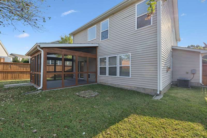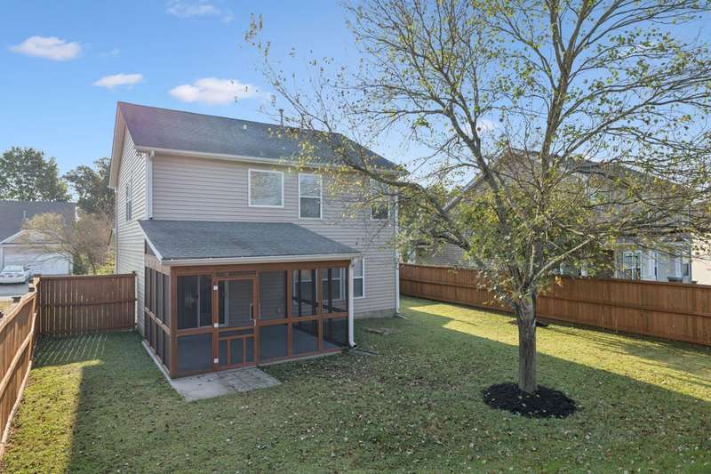 Beautifully maintained contemporary-style home that offers 1,833 sq. ft. of thoughtfully designed living space with 3 bedrooms, 2.5 baths, and a 2-car garage.Spacious bonus room area featuring a gas fireplace with built-ins, perfect for relaxing evenings. The eat-in kitchen is well appointed with a pantry, breakfast bar, and plenty of cabinet space. Upstairs, a separate office with French doors provides the ideal spot for working from home or quiet study. The primary suite is complete with a full bath, separate garden tub, and walk-in shower. Two additional bedrooms and baths offer comfort and convenience for family or guests. Enjoy outdoor living on the covered patio overlooking a fully fenced private backyard-great for gatherings, pets, or quiet relaxation. Located just minutes from I-40, Old Hickory Lake, Percy Priest Lake, and within walking distance of the Providence Marketplace via the development sidewalk system, this home combines modern living with unbeatable convenience.