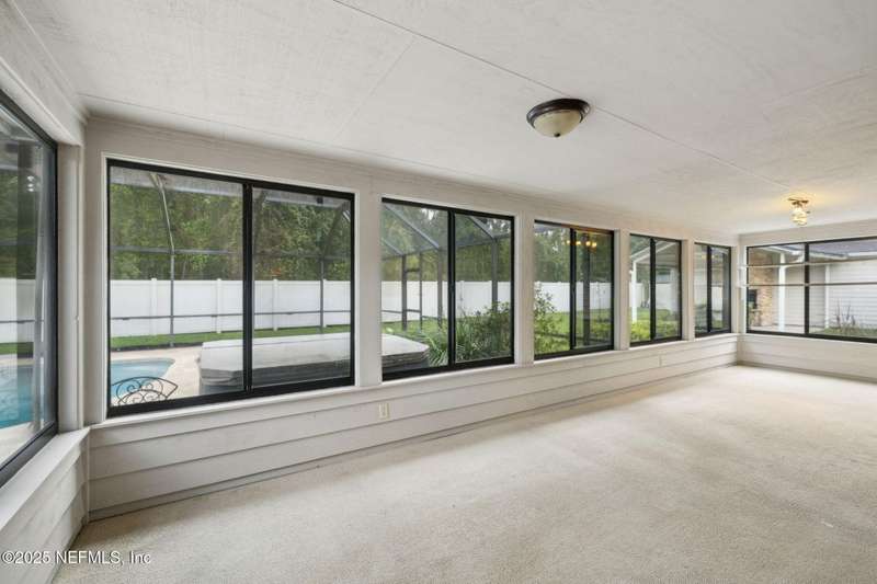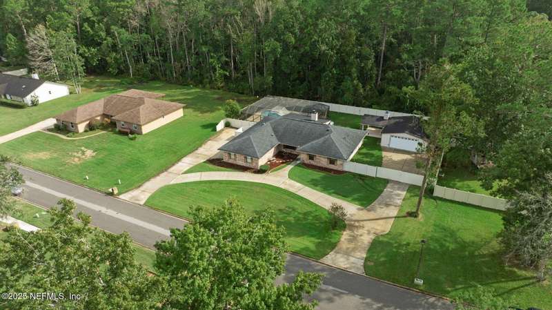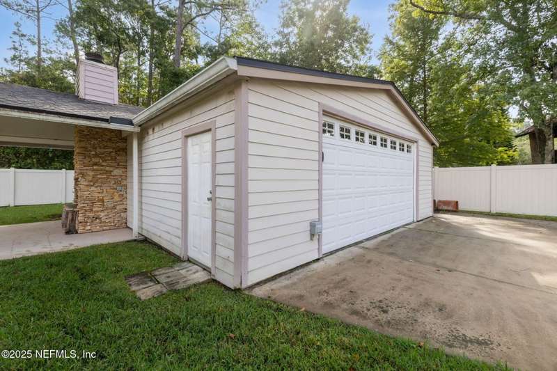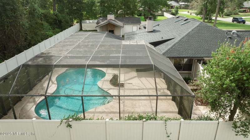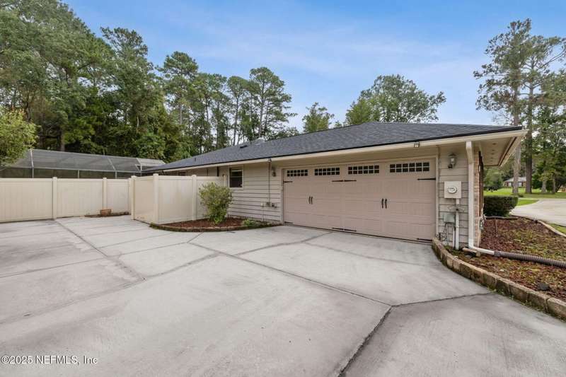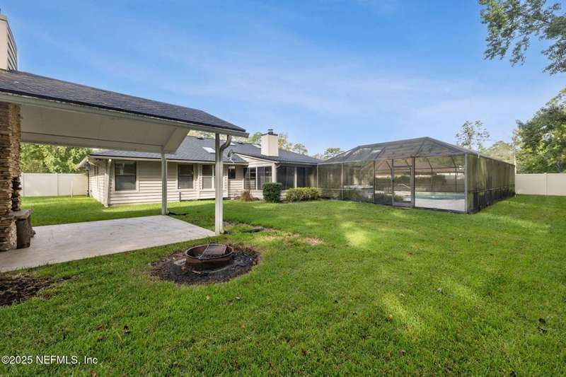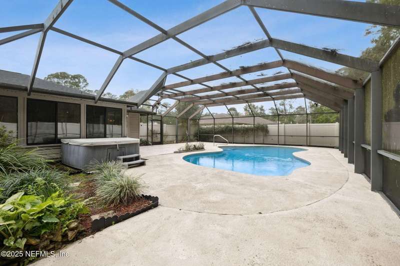 This well-appointed 4-bedroom, 2.5-bath home is situated on a spacious 1/2-acre lot in Mandarin.The interior features updated main flooring and carpet. Spacious kitchen including island, granite countertops, new garbage disposal, built in pantries and ample storage. Lots of room to entertain with additional seating at bar top. The primary suite provides a private retreat with natural stone and heated floors, and a custom walk in closet. Three additional bedrooms offer flexibility for family, guests, or home office. Enjoy year-round living with a screen-enclosed pool, hot tub, outdoor fireplace, and ample patio space. Additional highlights include a detached garage/workshop, circle driveway, dedicated RV/boat parking and 30 amp outlets. No HOA restrictions. Roof replaced 2024, newer water heater and HVAC. the pool surface and pump updated in the last 5 years. Home is wired for a whole home generator, has 2 - 30 amp outlets, and a 220v outlet for RVs and toys.