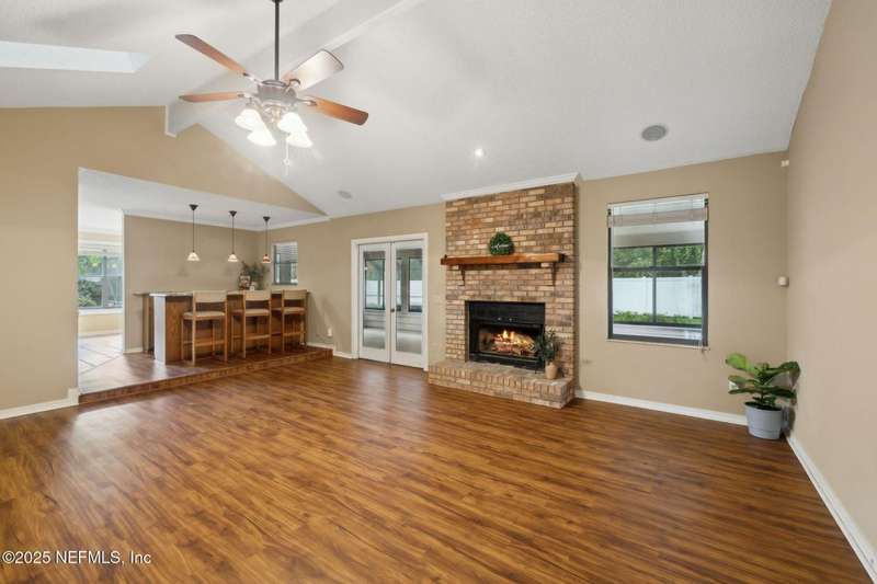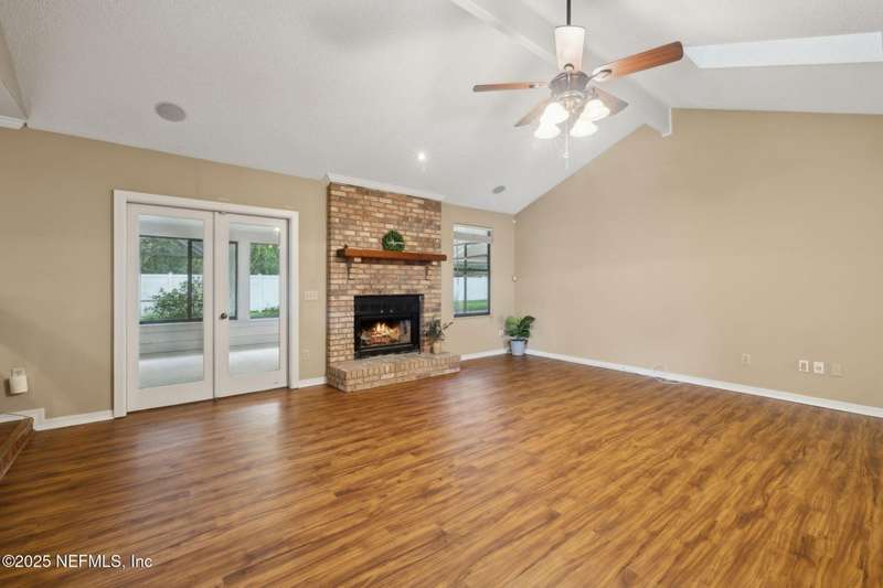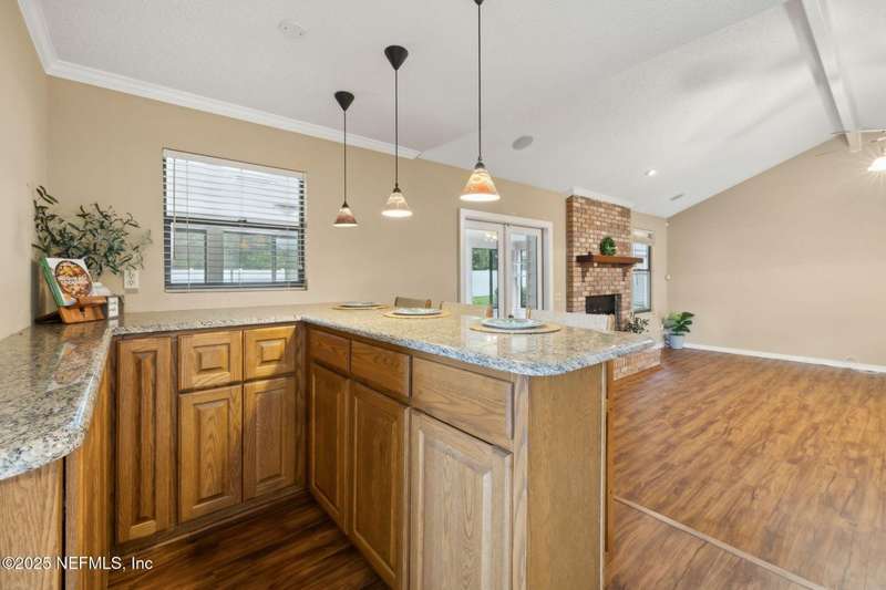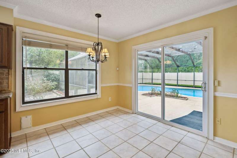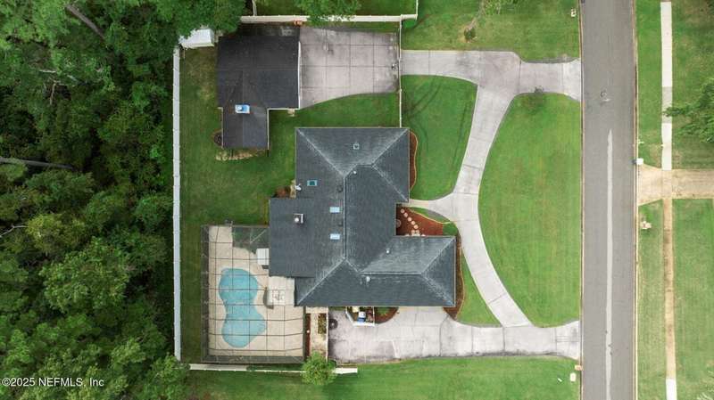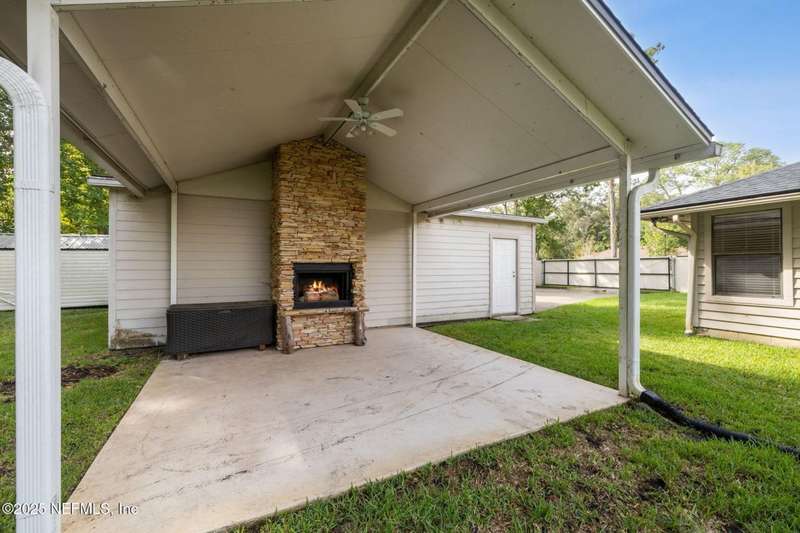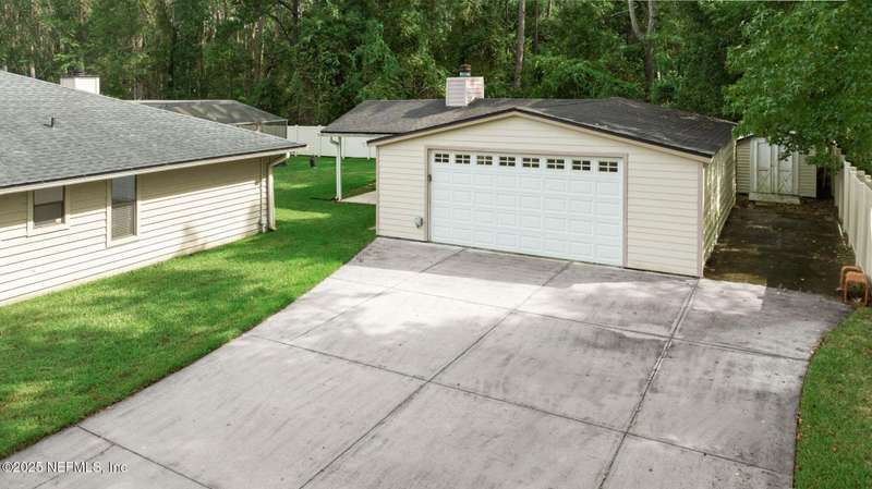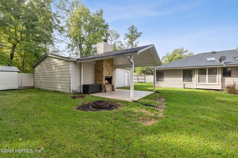 This well-appointed 4-bedroom, 2.5-bath home is situated on a spacious 1/2-acre lot in Mandarin.The interior features updated main flooring and carpet. Spacious kitchen including island, granite countertops, new garbage disposal, built in pantries and ample storage. Lots of room to entertain with additional seating at bar top. The primary suite provides a private retreat with natural stone and heated floors, and a custom walk in closet. Three additional bedrooms offer flexibility for family, guests, or home office. Enjoy year-round living with a screen-enclosed pool, hot tub, outdoor fireplace, and ample patio space. Additional highlights include a detached garage/workshop, circle driveway, dedicated RV/boat parking and 30 amp outlets. No HOA restrictions. Roof replaced 2024, newer water heater and HVAC. the pool surface and pump updated in the last 5 years. Home is wired for a whole home generator, has 2 - 30 amp outlets, and a 220v outlet for RVs and toys.