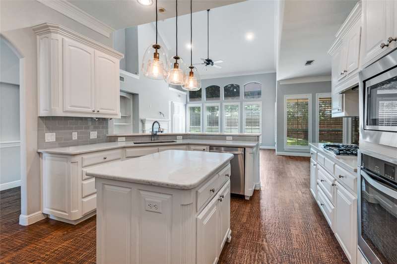 Gorgeous 4 bedroom, 3 bath home in sought after Creekwood in Hidden Lakes. Kitchen has been beautifully updated with quarts countertops and stainless steel appliances. Home features hand scraped hardwood floors, 2 fireplaces, soaring ceilings, plantation shutters, elevated views from the front porch and much more. Master suite and guest bedroom down with 2 bedrooms and large game room up. Spacious backyard perfect for entertaining. Small dog negotiable with additional deposit. Owner will consider a 12 or 18 month lease term.