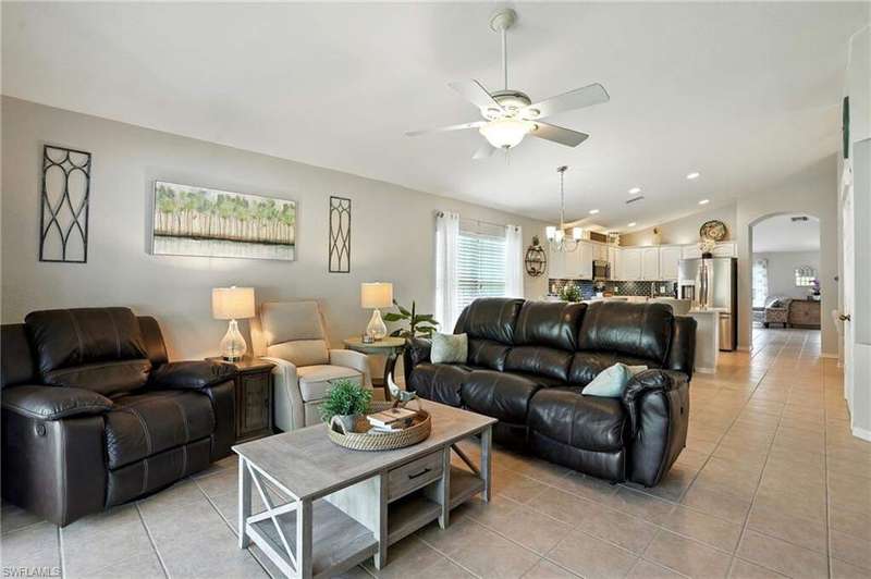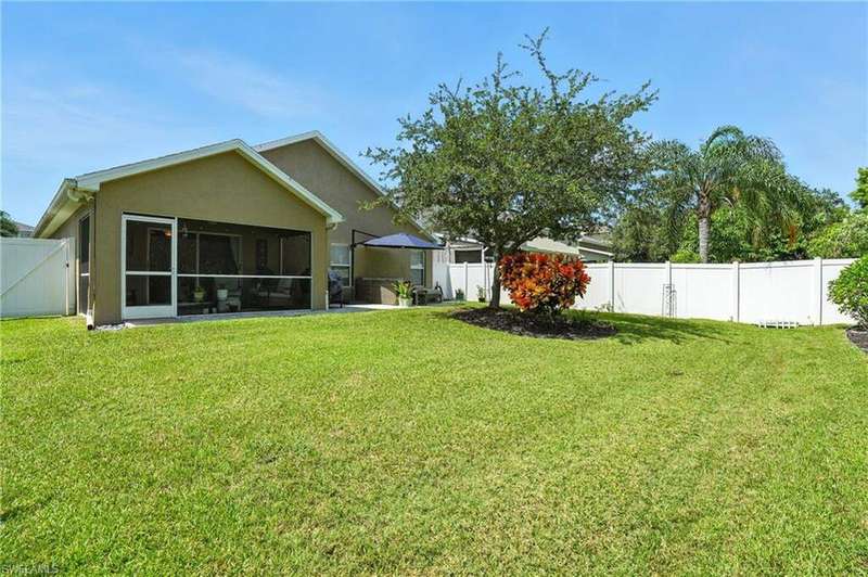Wake up to serene preserve views in this thoughtfully updated 4-bedroom home nestled on the only secluded loop in the gated community of Gladiolus Preserve. Inside, soaring vaulted ceilings and abundant natural light fill nearly 2,000 sq. ft. of living space with a bright and airy ambiance. Two spacious living and dining areas provide the perfect setting for entertaining or relaxing, while the modern kitchen impresses with updated countertops, a tiled backsplash, breakfast bar, double-door pantry, and a built-in desk. The luxurious primary suite features premium vinyl plank flooring, a generous walk-in closet, and a spa-like ensuite bath with dual vanities, soaking tub, and separate walk-in shower. The versatile 4th bedroom adjoins the primary suite through elegant French doors, enabling it to effortlessly transform into a home office, wellness room, nursery, or cozy sitting area. Move right in and enjoy updated flooring (no carpet), new water heater and A/C compressor (2025), plus a newer roof and kitchen appliances (2022). Your private screened lanai and new paver patio invite you to unwind or entertain while overlooking the spacious backyard and tranquil preserve. Rest easy with low HOA fees, No CDD fees, and No history of flooding! Gladiolus Preserve offers residents a variety of amenities including a clubhouse, heated pool, fitness center, and playground. Ideally located in the heart of South Fort Myers, you'll be just minutes from Sanibel, Fort Myers Beach, Lakes Public Library, and both HealthPark and Golisano Children's Hospitals.