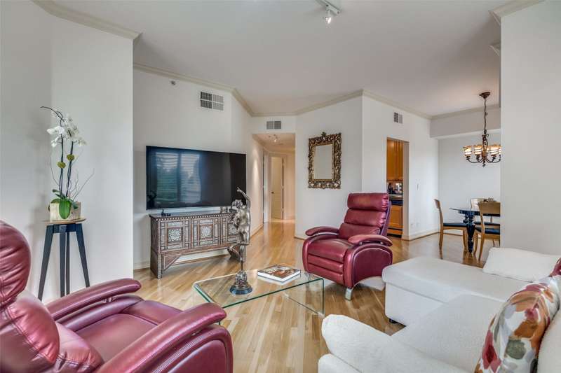 Sophisticated and well-maintained corner residence at The Mayfair, featuring 1 bedroom and 1.1 baths. Expansive windows with plantation shutters fill the home with natural light, creating a bright and inviting atmosphere. The open living and dining areas provide an ideal layout for entertaining, complemented by hardwood floors in the main living areas. Spacious primary bedroom includes ensuite bath and a custom walk-in primary closet. Enjoy picturesque views overlooking the landscaped grounds. The Mayfair offers unmatched amenities, including the Skyclub rooftop lounge and terraces with panoramic 360-degree views, a state-of-the-art fitness center, coffee bar, resort-style pool with grilling areas, and 24-7 valet parking.